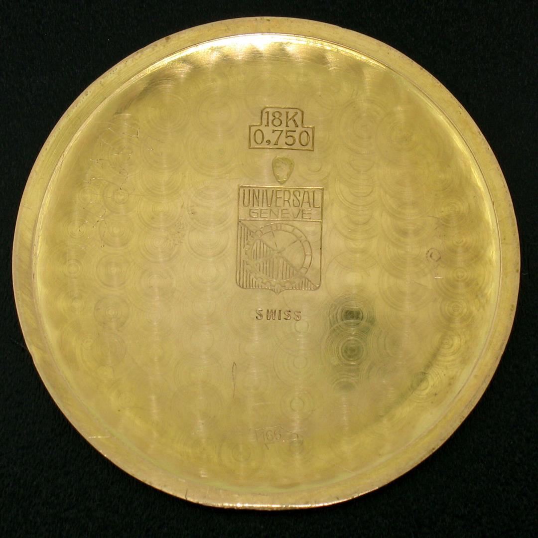 A vintage Universal Geneve men's wrist watch with a 36mm solid 18kt rose gold case. Features a Swiss-made, hand winding, 17 jewel, caliber 262 movement; 100% working.