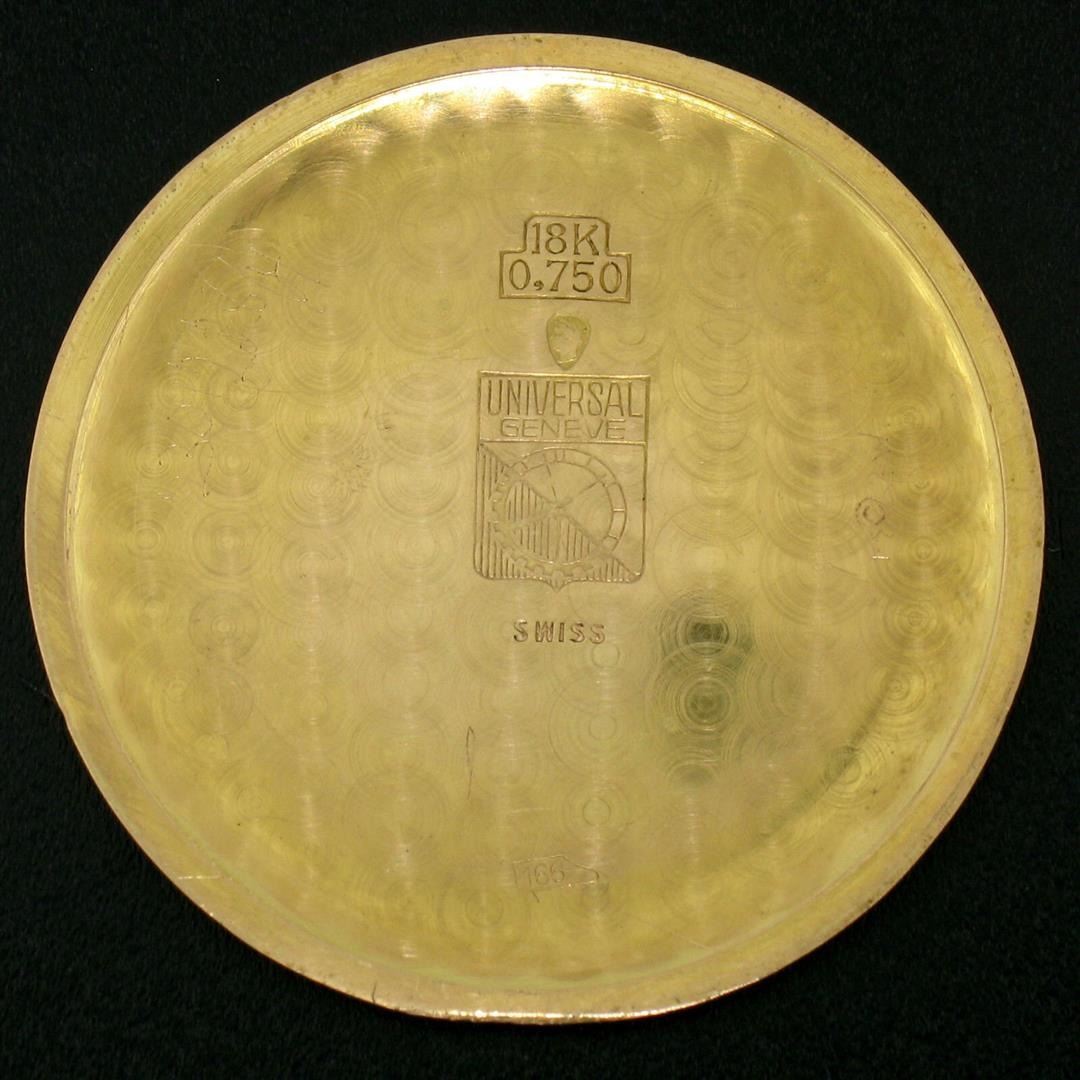 A vintage Universal Geneve men's wrist watch with a 36mm solid 18k rose gold case. Features a Swiss-made, hand winding, 17 jewel, caliber 262 movement; 100% working.