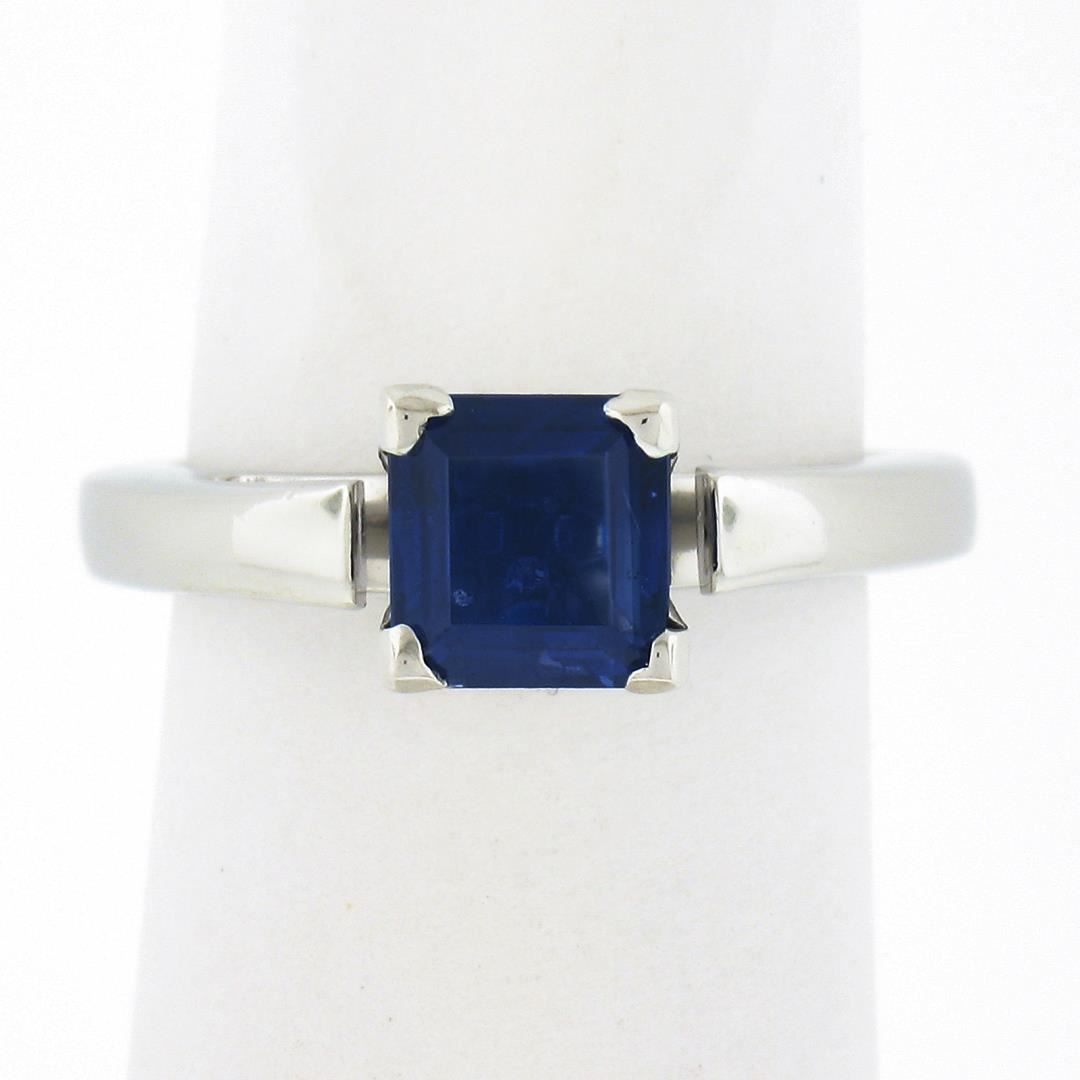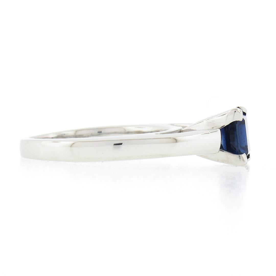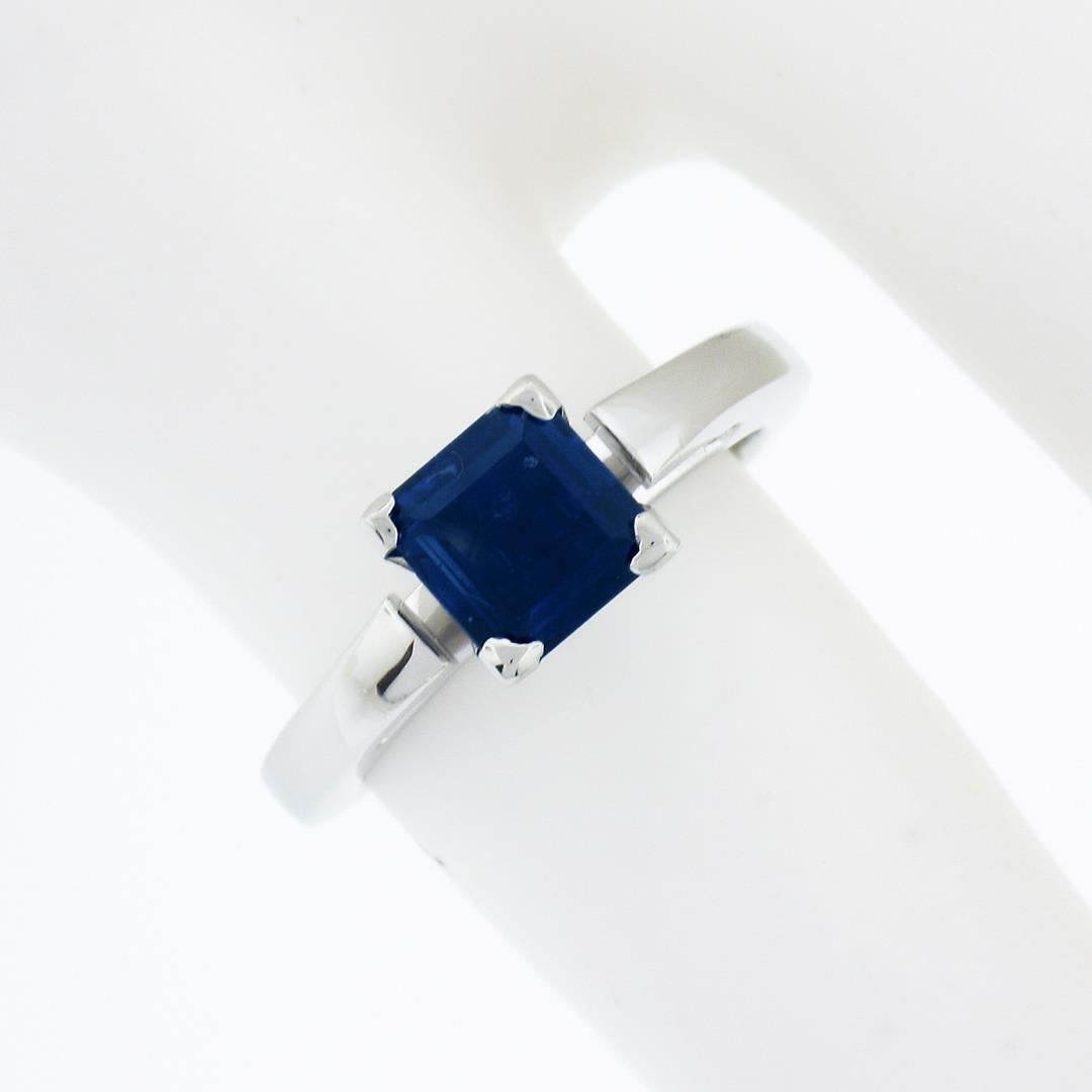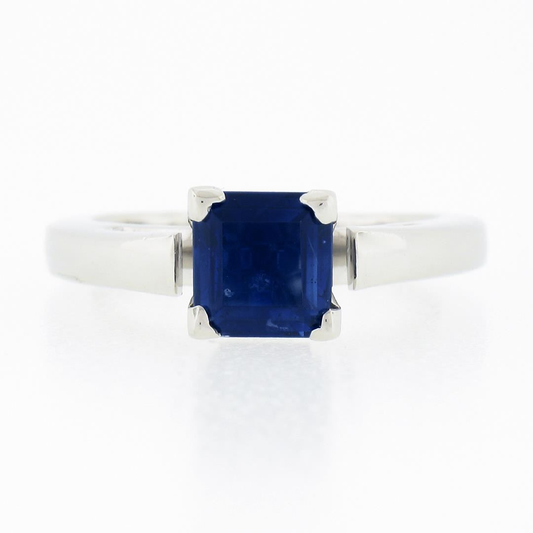 A vintage solid platinum ring, with 1 square step cut natural sapphire ( 5.76x6.04mm - 1.05ct).The ring is size 4.0, weighs a total of 6.70 grams, and measures 6.30mm wide.