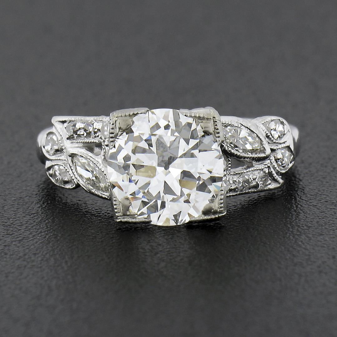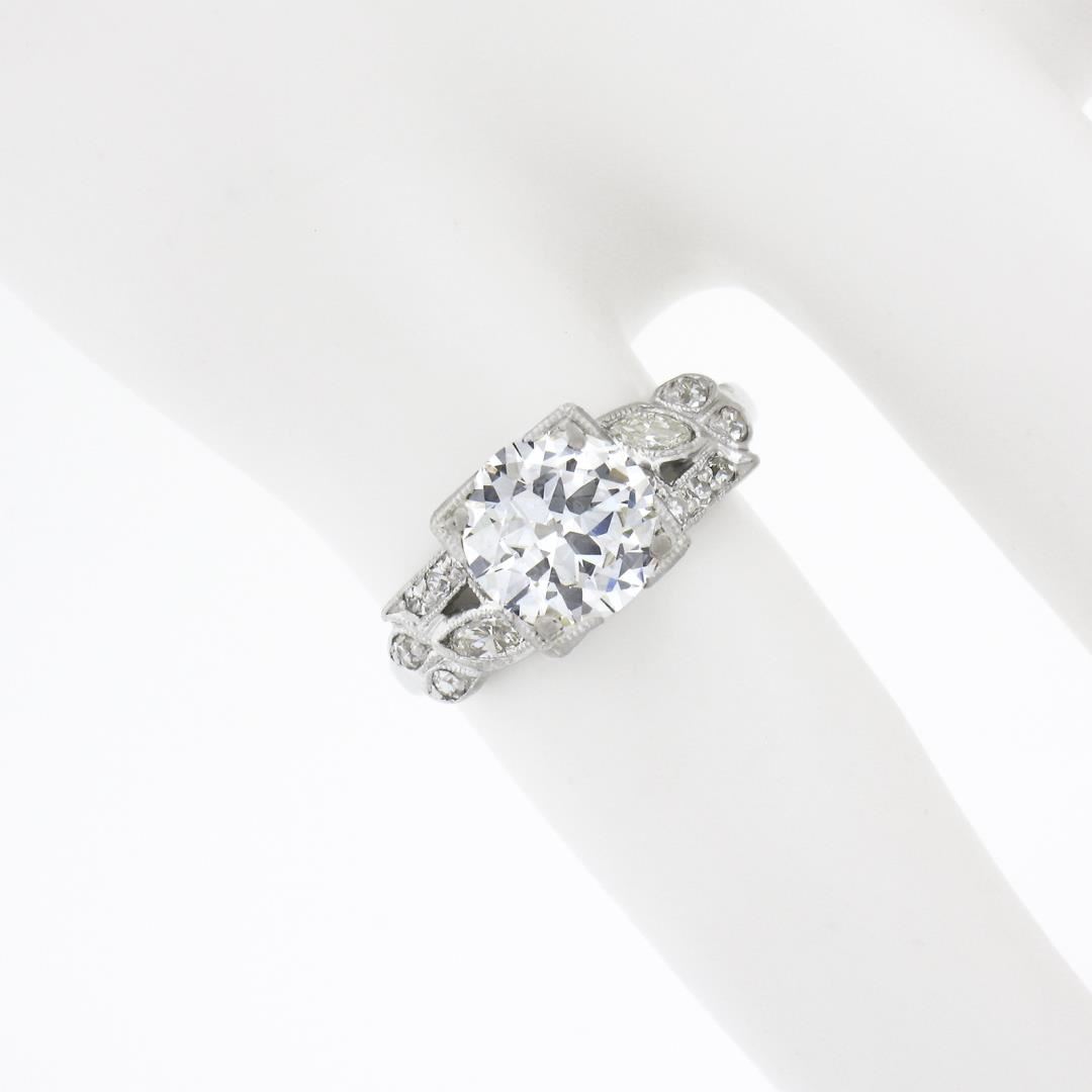 Vintage Platinum 1.67 ctw GIA European Diamond w/ Marquise Accents Engagement Ri