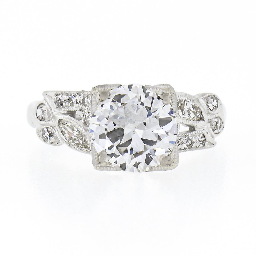 A vintage solid platinum ring, featuring with 1 GIA graded old European cut natural diamond (J - VS2; 1.33ct), 2 old marquise cut natural diamonds (H/I -VS2/SI1 ; 0.16ctw), and 12 old single cut natural diamonds (G/H - VS1/VS2 ; 0.18ctw). The ring is size 4.5, weighs a total of 4.0 grams, and measures 7.60mm wide. Comes with all original relevant certifications.