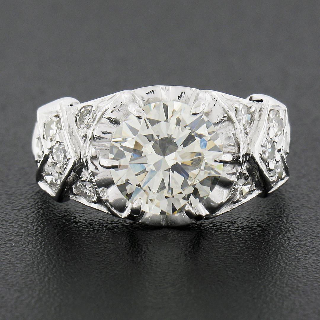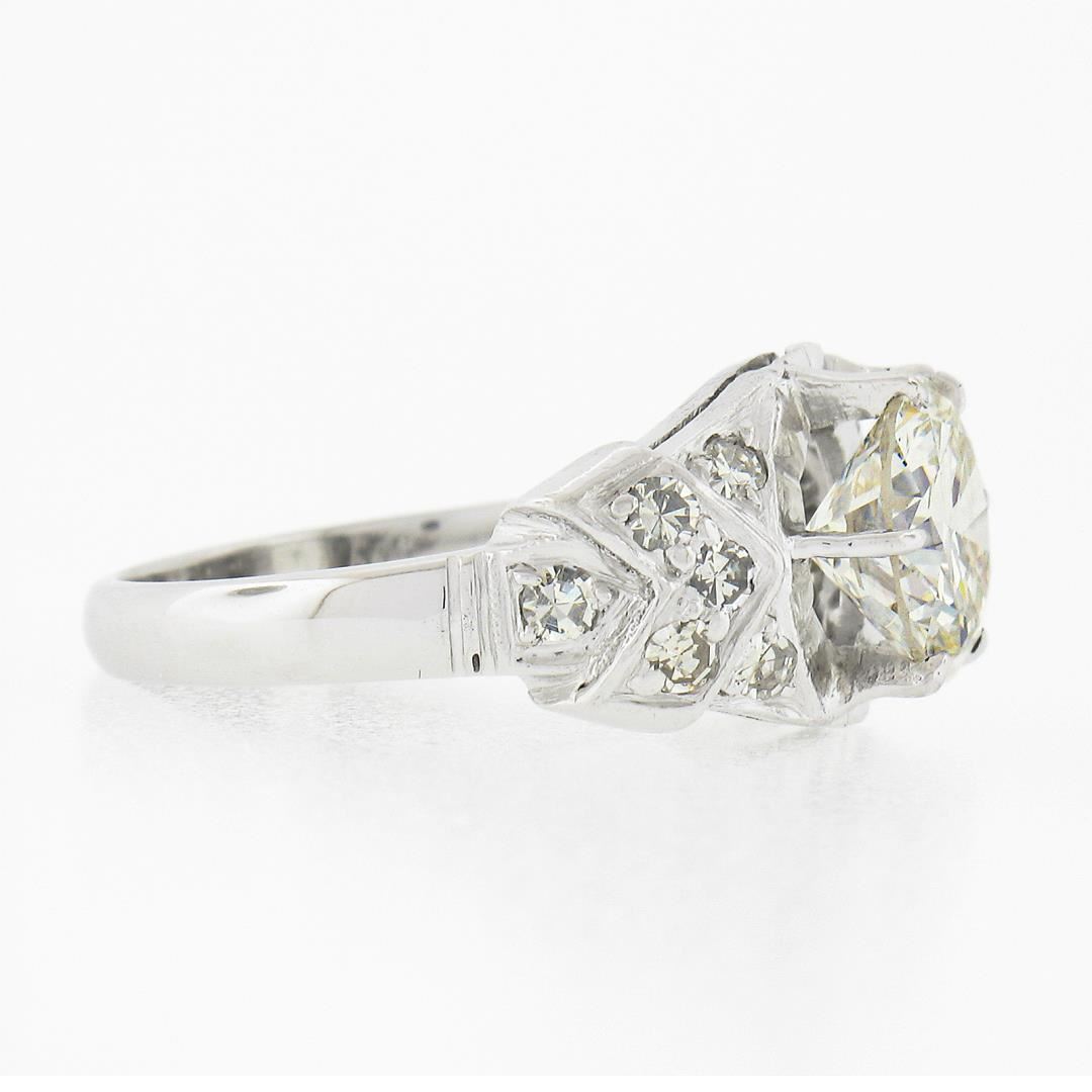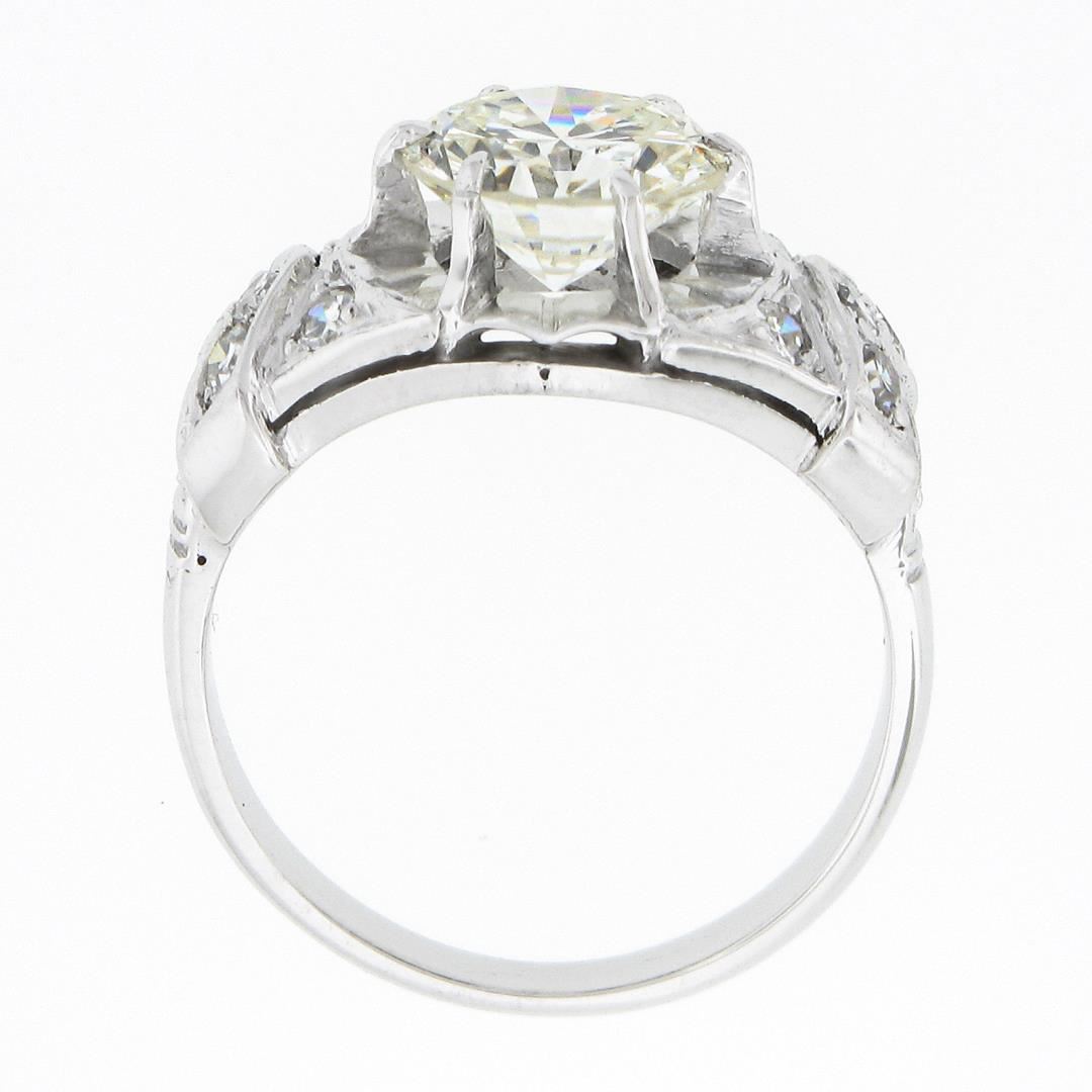 Vintage Platinum 2.15 ctw GIA Round Prong Set Diamond w/ Accents Engagement Ring