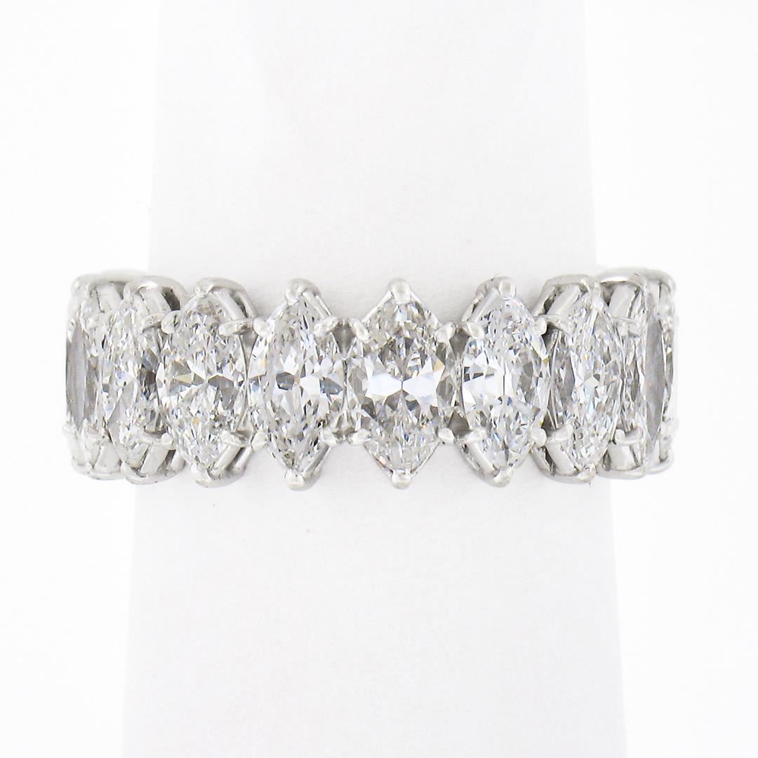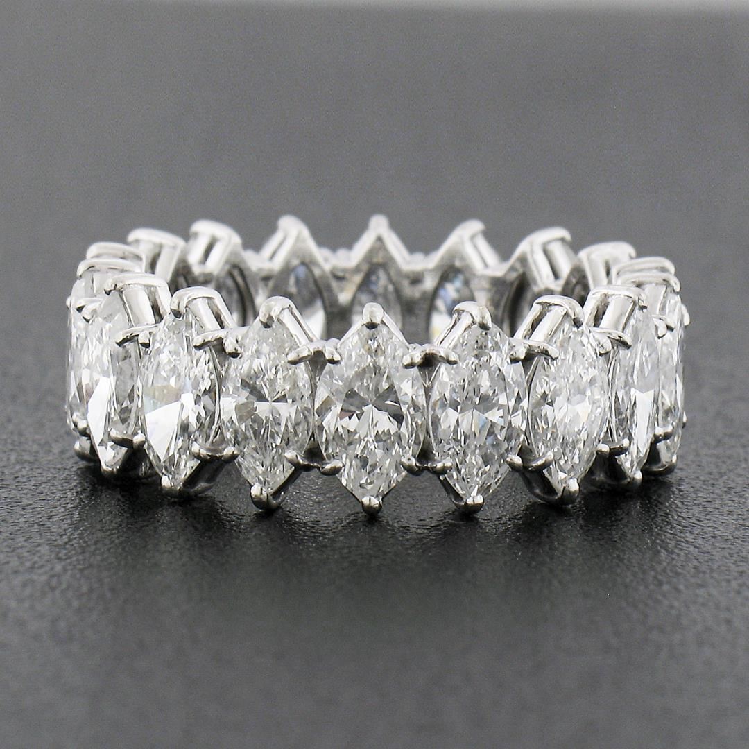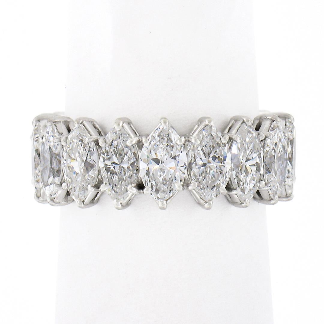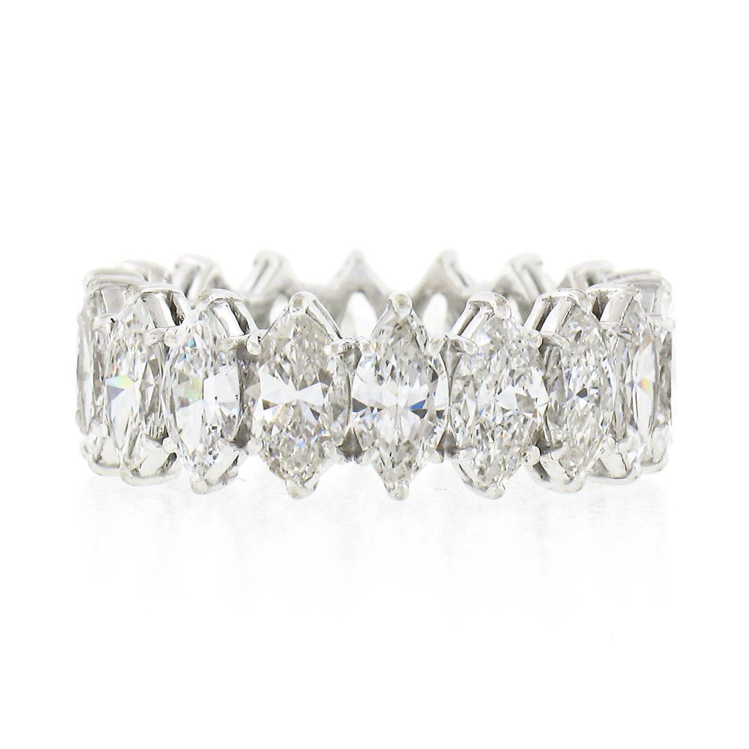 A vintage platinum eternity band ring, with18 marquise cut natural diamonds (F/G - VS1/VS2 ; 4.50+ctw). The ring is size 4.5, weighs a total of 5.87 grams, and measures 6.8mm wide.