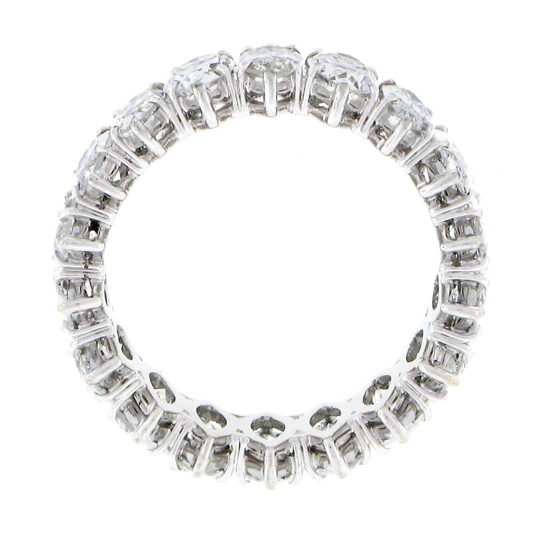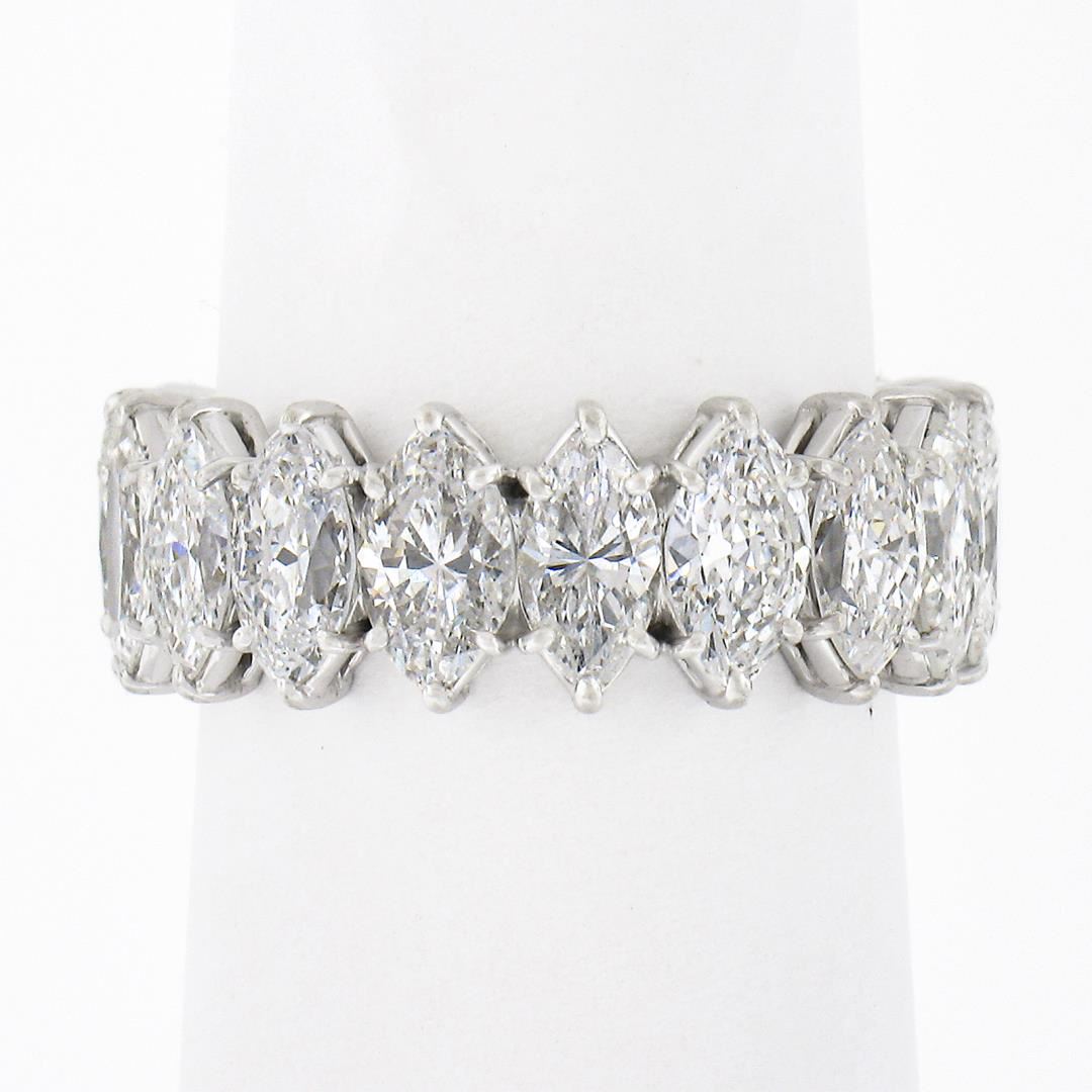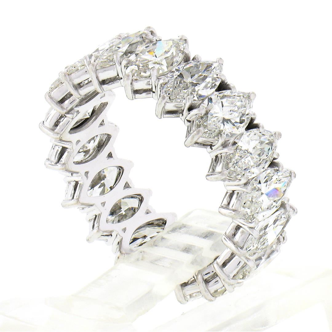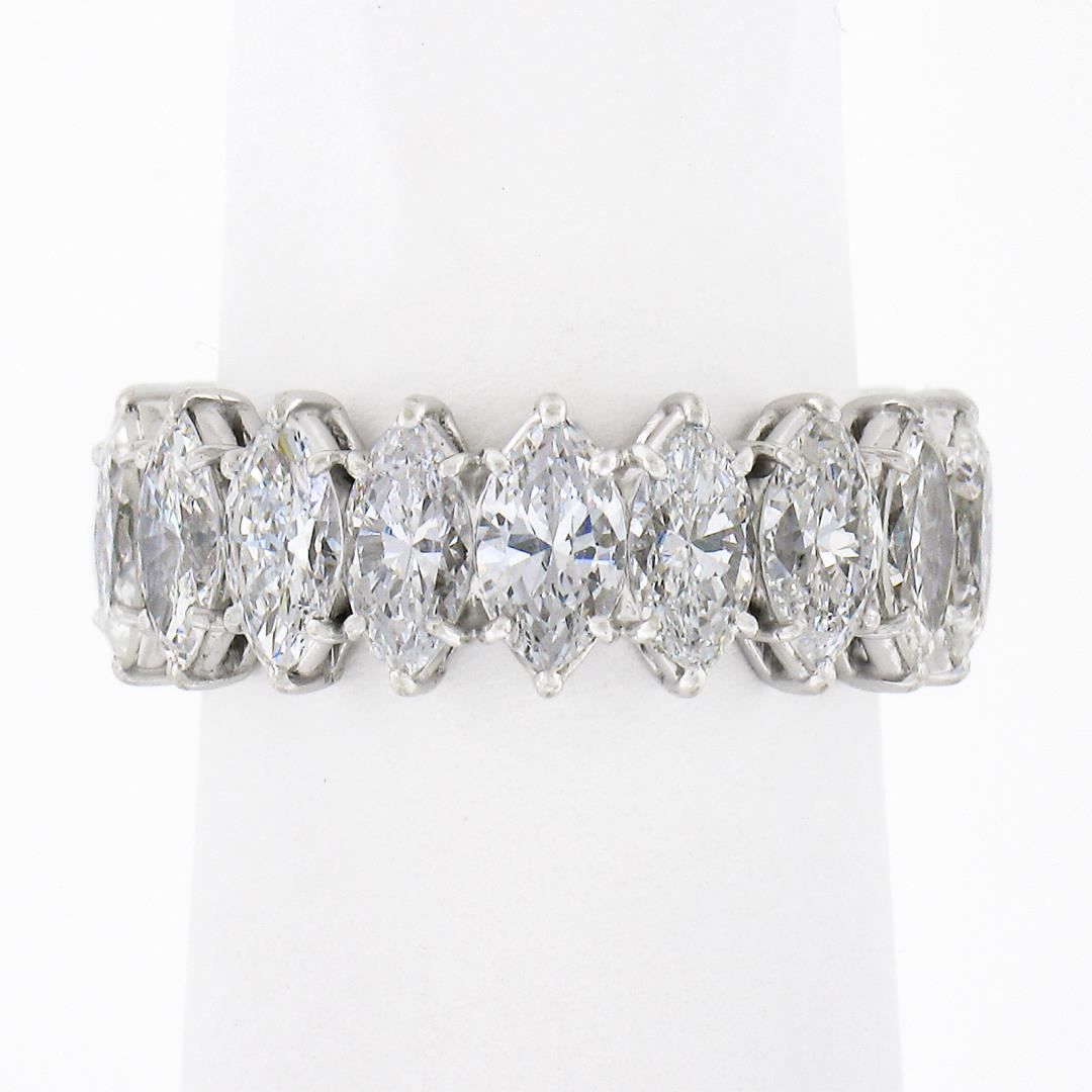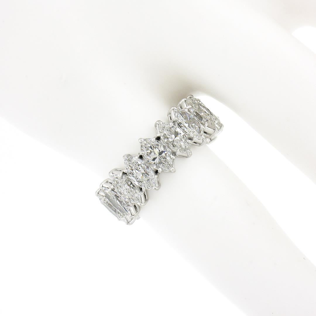 A vintage platinum eternity band ring, with18 marquise cut natural diamonds (F/G - VS1/VS2 ; 4.50+ctw). The ring is size 4.5, weighs a total of 5.87 grams, and measures 6.8mm wide.