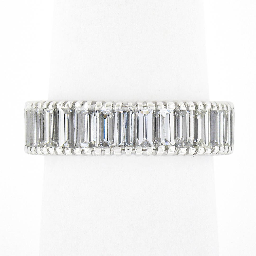 A vintage solid platinum band ring, with 31 straight baguette cut natural diamonds (G/H - VS1/VS2 w/ a few SI1 ; 4.60ctw). The ring is size 7.0, weighs a total of 5.27 grams, and measures 5.7mm wide.