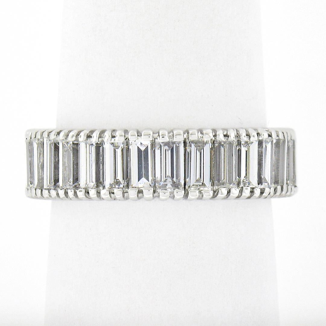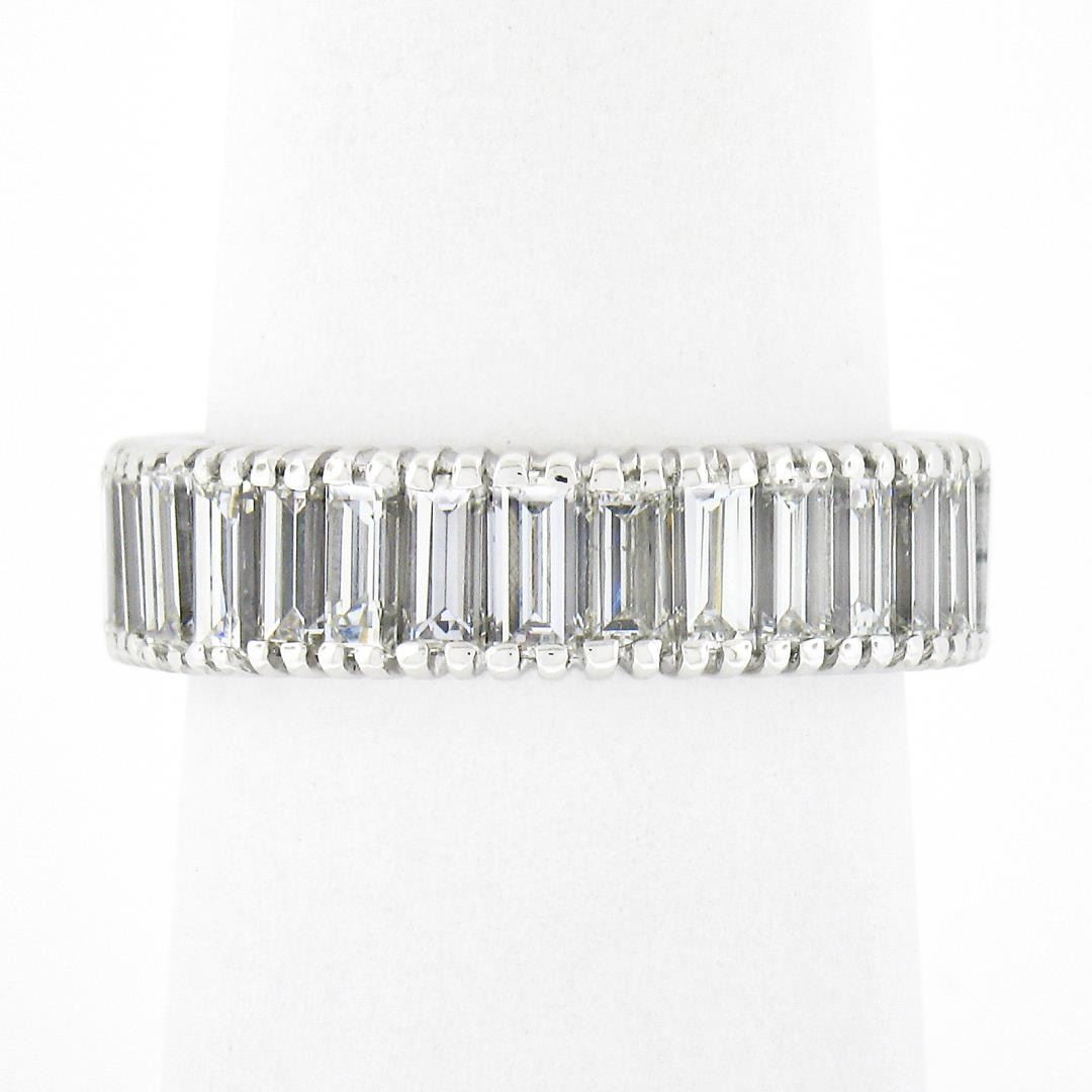 A vintage solid platinum band ring, with 31 straight baguette cut natural diamonds (G/H - VS1/VS2 w/ a few SI1 ; 4.60ctw). The ring is size 7.0, weighs a total of 5.27 grams, and measures 5.7mm wide.