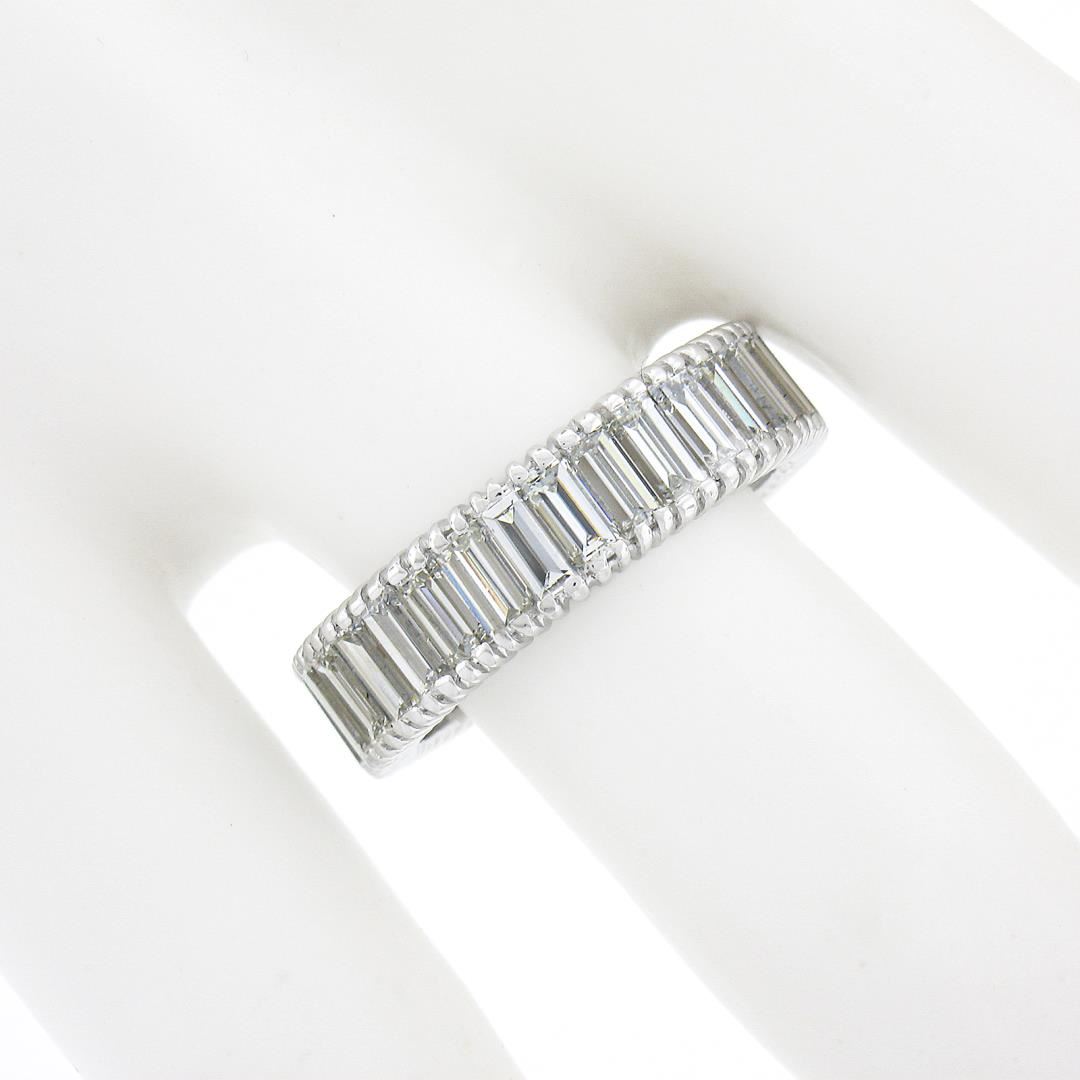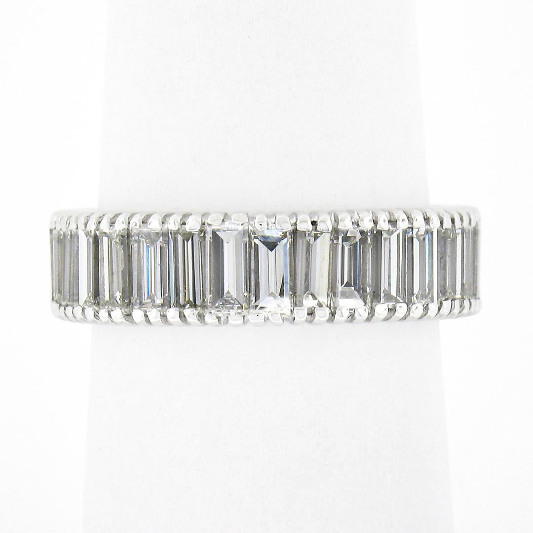 A vintage solid platinum band ring, with 31 straight baguette cut natural diamonds (G/H - VS1/VS2 w/ a few SI1 ; 4.60ctw). The ring is size 7.0, weighs a total of 5.27 grams, and measures 5.7mm wide.