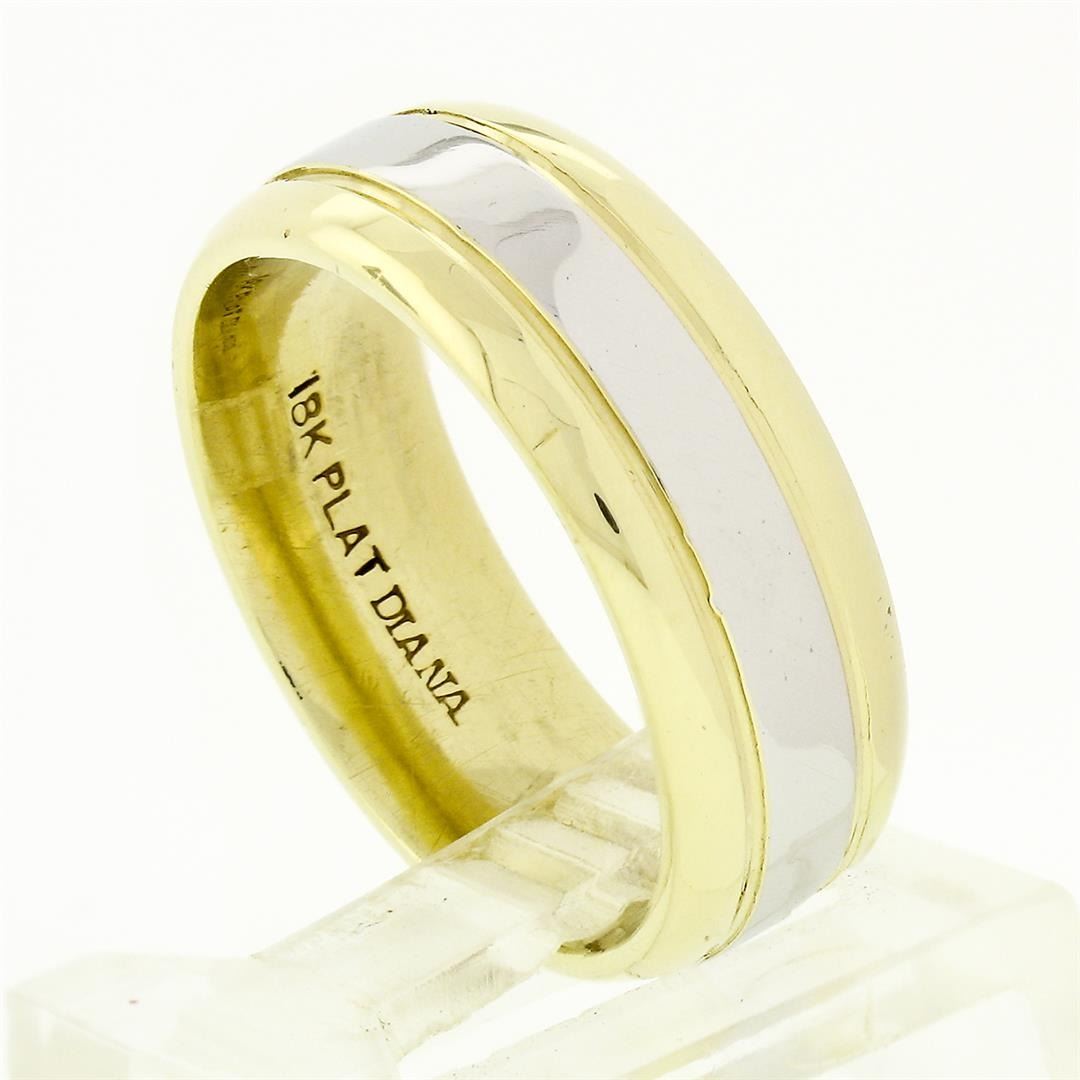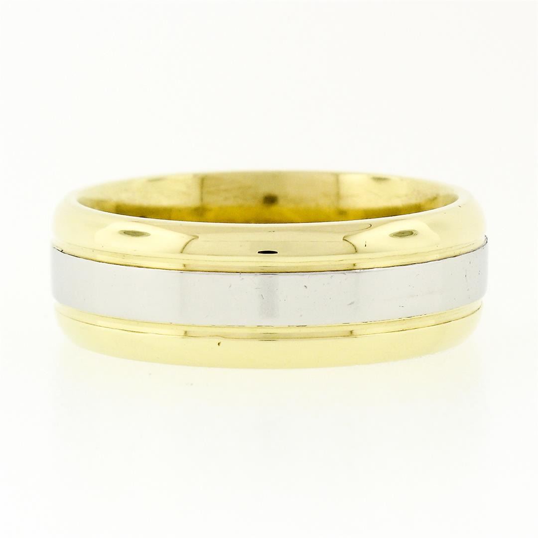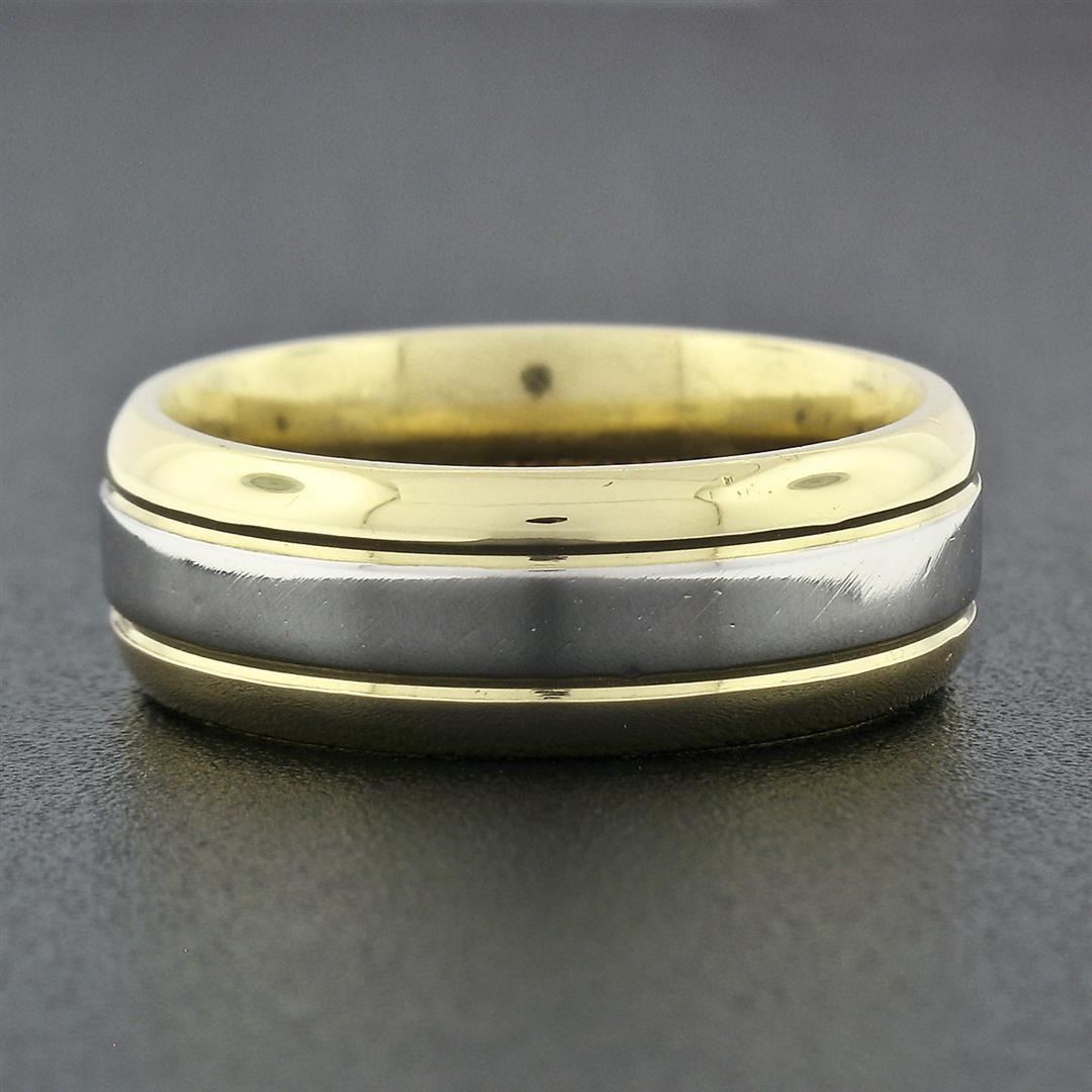 A vintage solid platinum & 18k yellow gold band ring. The ring is size 7.5, weighs a total of 10.93 grams, and measures 6.91mm wide.