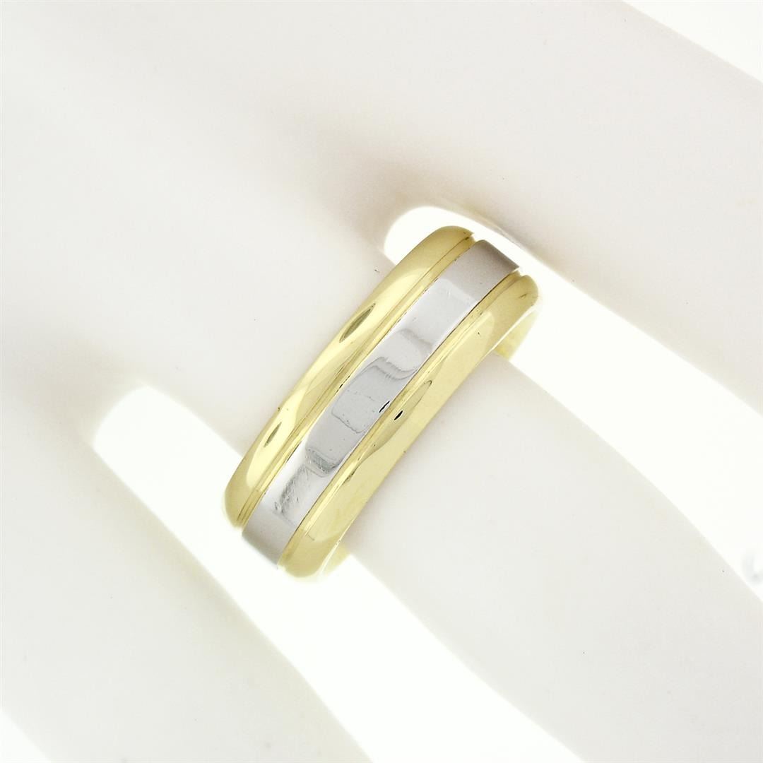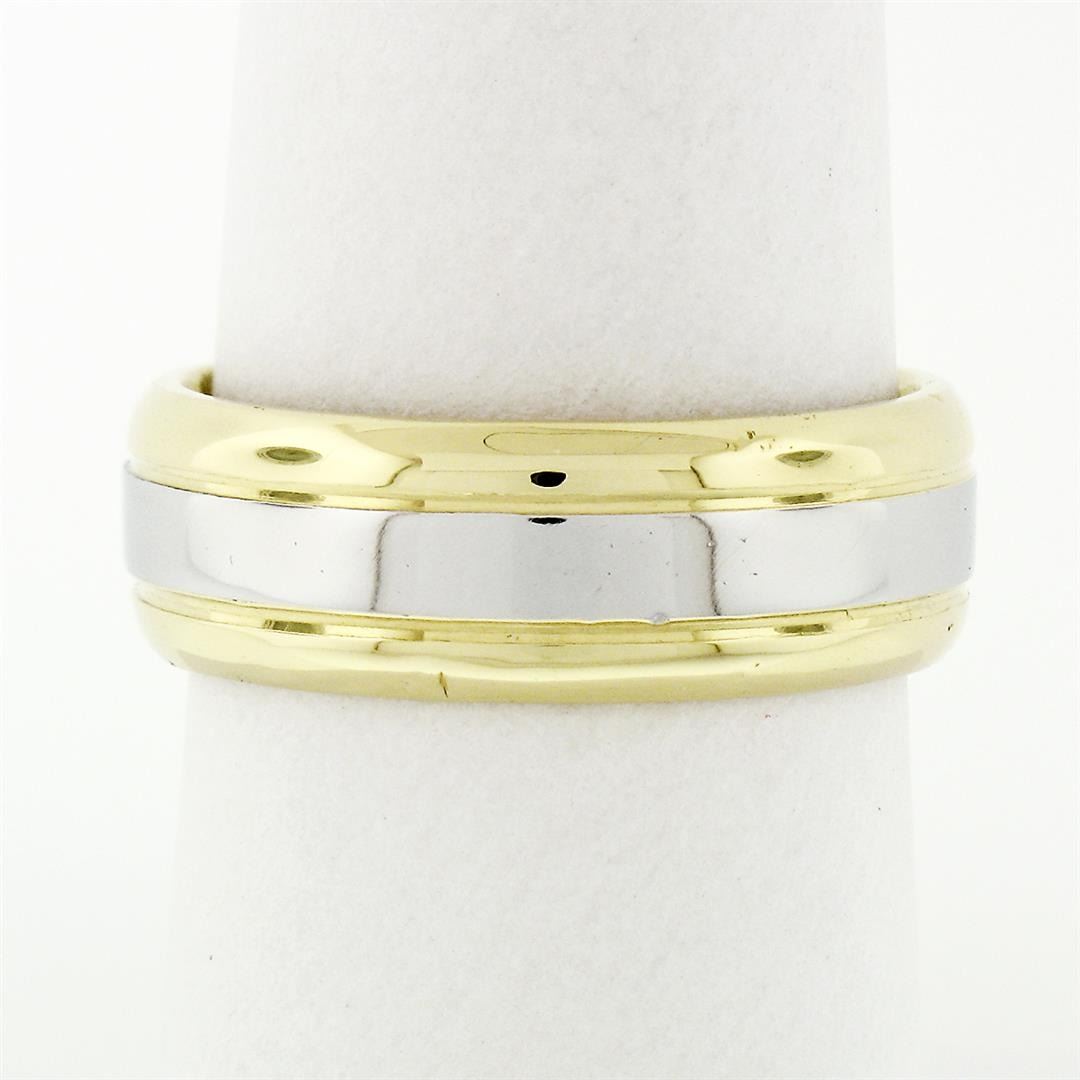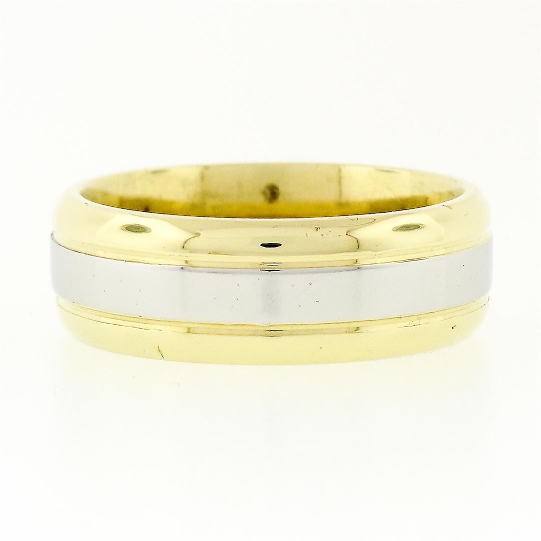 A vintage solid platinum & 18k yellow gold band ring. The ring is size 7.5, weighs a total of 10.93 grams, and measures 6.91mm wide.