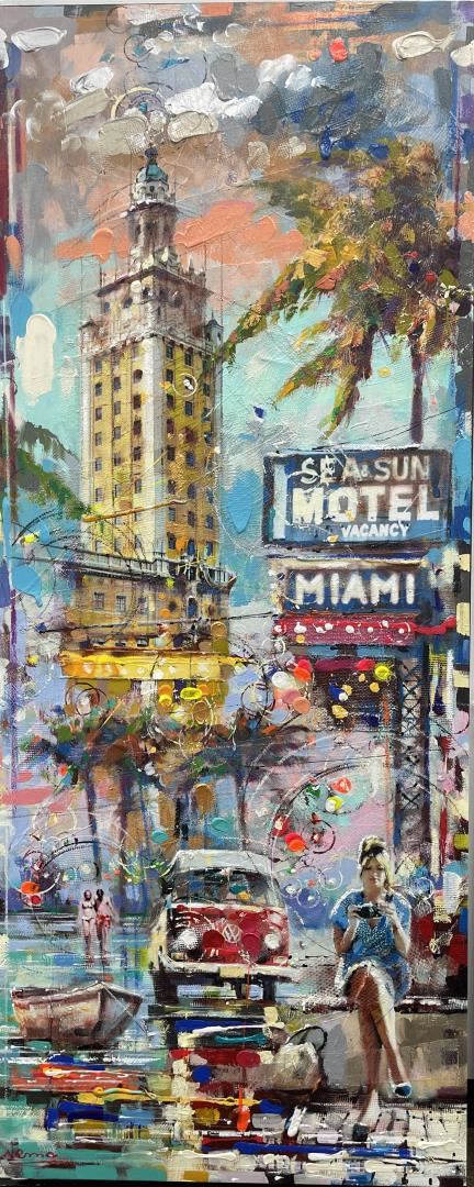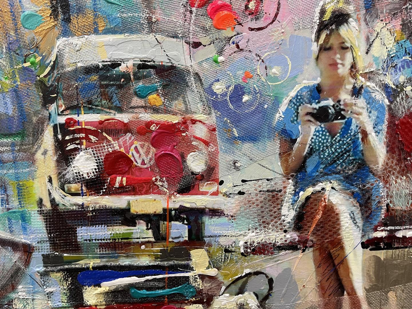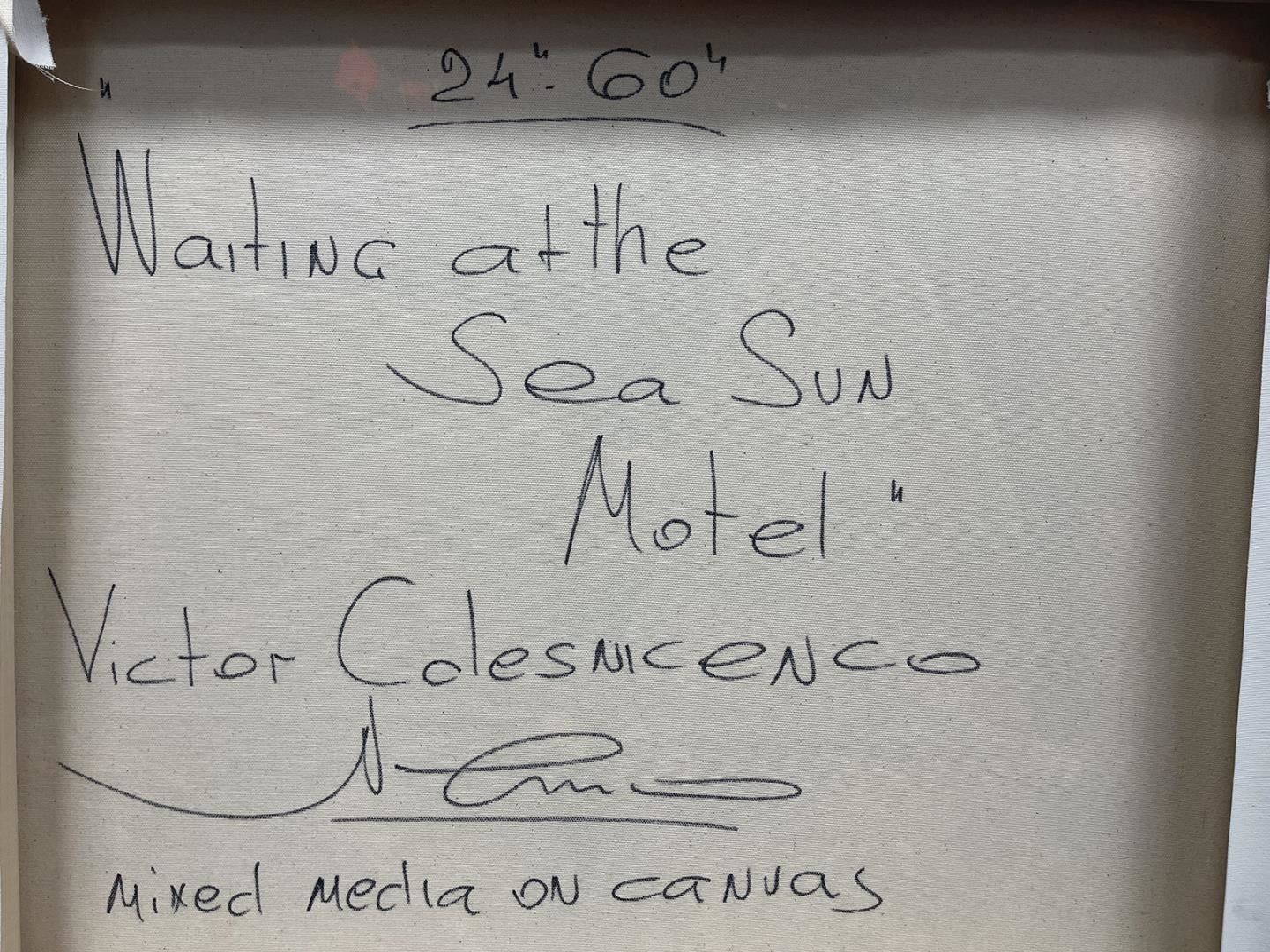 Eye-catching original mixed media on canvas, hand signed by Colesnicenco, this artwork comes gallery wrapped. Approximately 24x60 inches