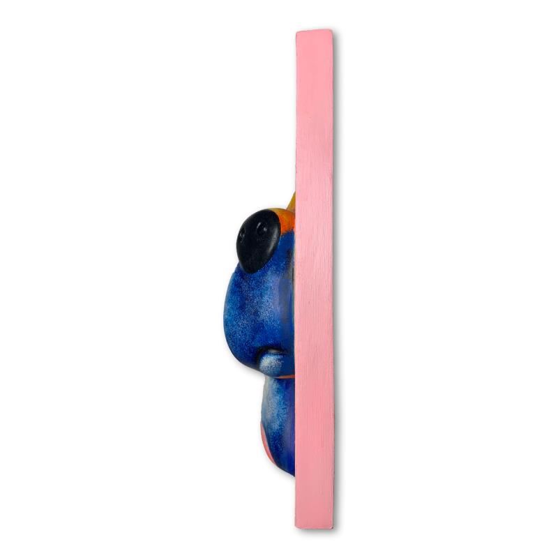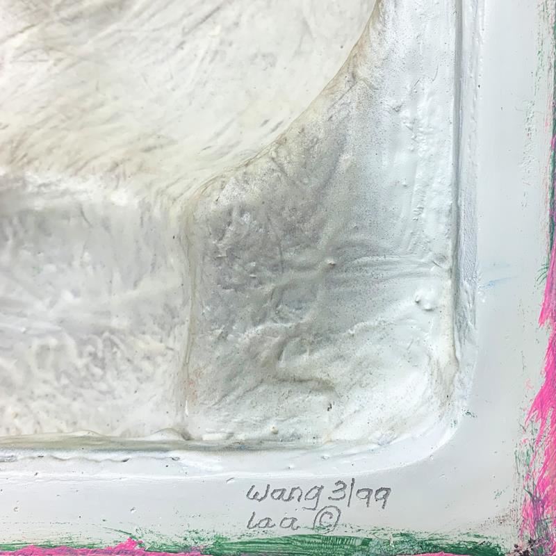 "Bandit (Yellow)" is a hand painted limited edition, dimensional art, bas relief sculpture by Wang. This piece is numbered 3/99, is hand signed in verso, and comes with a letter of authenticity. Measures approximately 13" x 10".