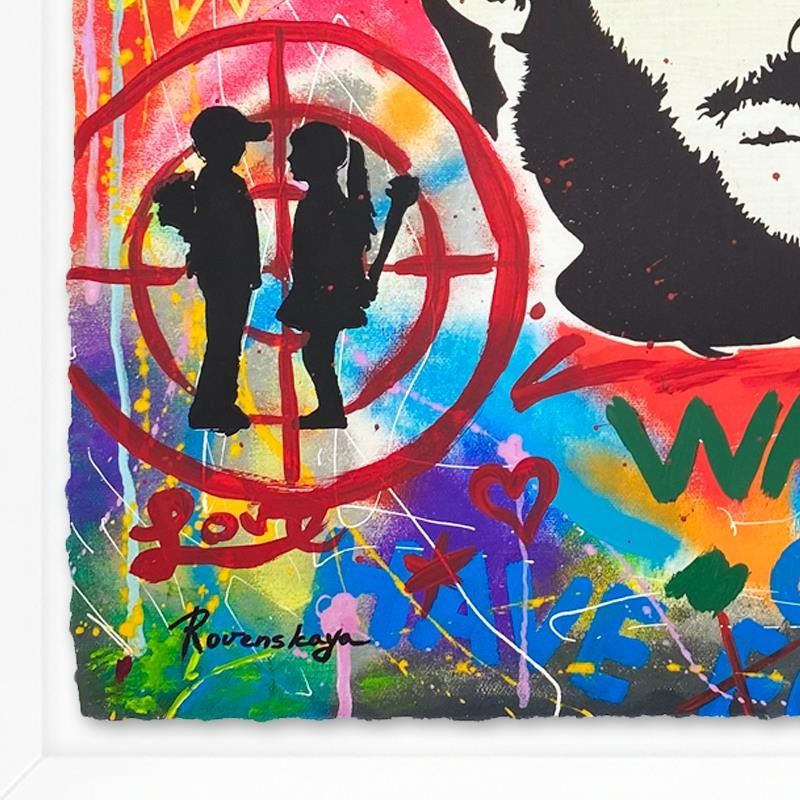 "Wanted" is a one-of-a-kind mixed media on deckle edge paper by Nastya Rovenskaya, Hand signed by the artist. This piece comes floating in a custom frame. Includes Letter of Authenticity. Measures approximately 28" x 34" (framed), 24" x 30" (image).