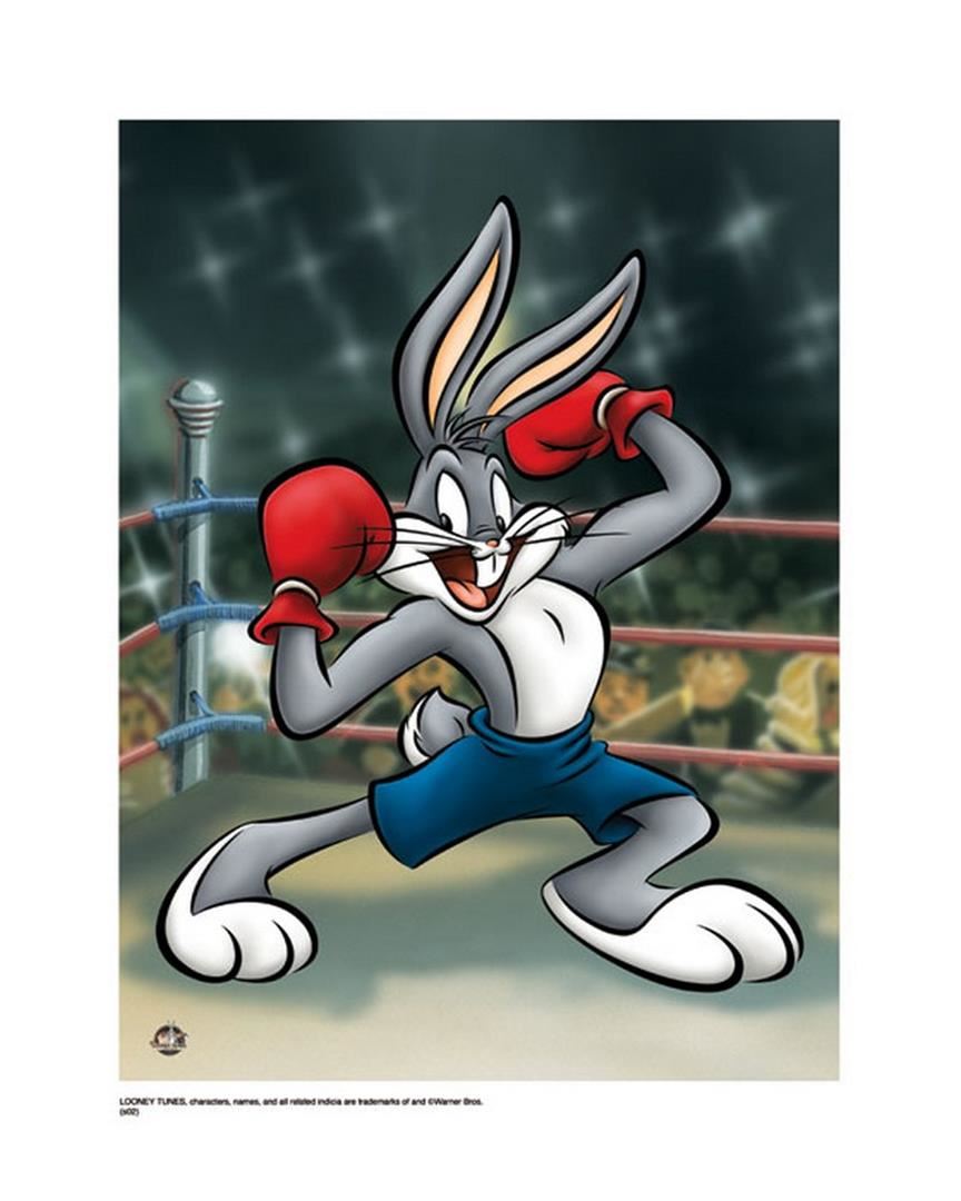 Artist: Warner Brothers - Title: Boxer Bugs - Medium: Giclee on Fine Art Paper - Limited Edition: 500 - Image Size: Approximately 12 Inches x 16 inches - Paper Size: Approximately 16 inches x 20 inches - Unframed - Details: This work comes with a Warner Brothers Hologram for Authenticity - The three Warner Directors were expected to turn out ten six-minute cartoons each year, or one every five weeks! And, each director had his own lead designer, background artist, and a team of animators. Mel Blanc provided the common thread as the man of a thousand voices, and Carl Stalling is most recognized as the Music Director for the majority of the Warner Bros. shorts