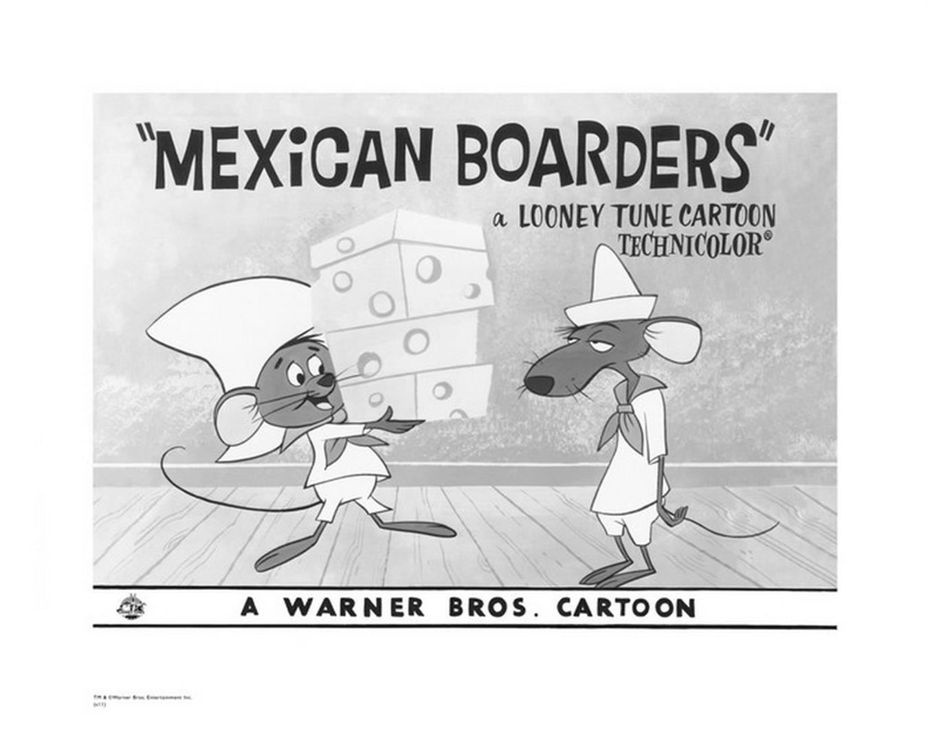 Artist: Warner Brothers - Title: Mexican Boarders - Medium: Giclee on Fine Art Paper - Limited Edition: 500 - Image Size: Approximately 12 Inches x 16 inches - Paper Size: Approximately 16 inches x 20 inches - Framed: Unframed - Details: This work comes with a Warner Brothers Hologram for Authenticity - The three Warner Directors were expected to turn out ten six-minute cartoons each year, or one every five weeks! And, each director had his own lead designer, background artist, and a team of animators. Mel Blanc provided the common thread as the man of a thousand voices, and Carl Stalling is most recognized as the Music Director for the majority of the Warner Bros. shorts