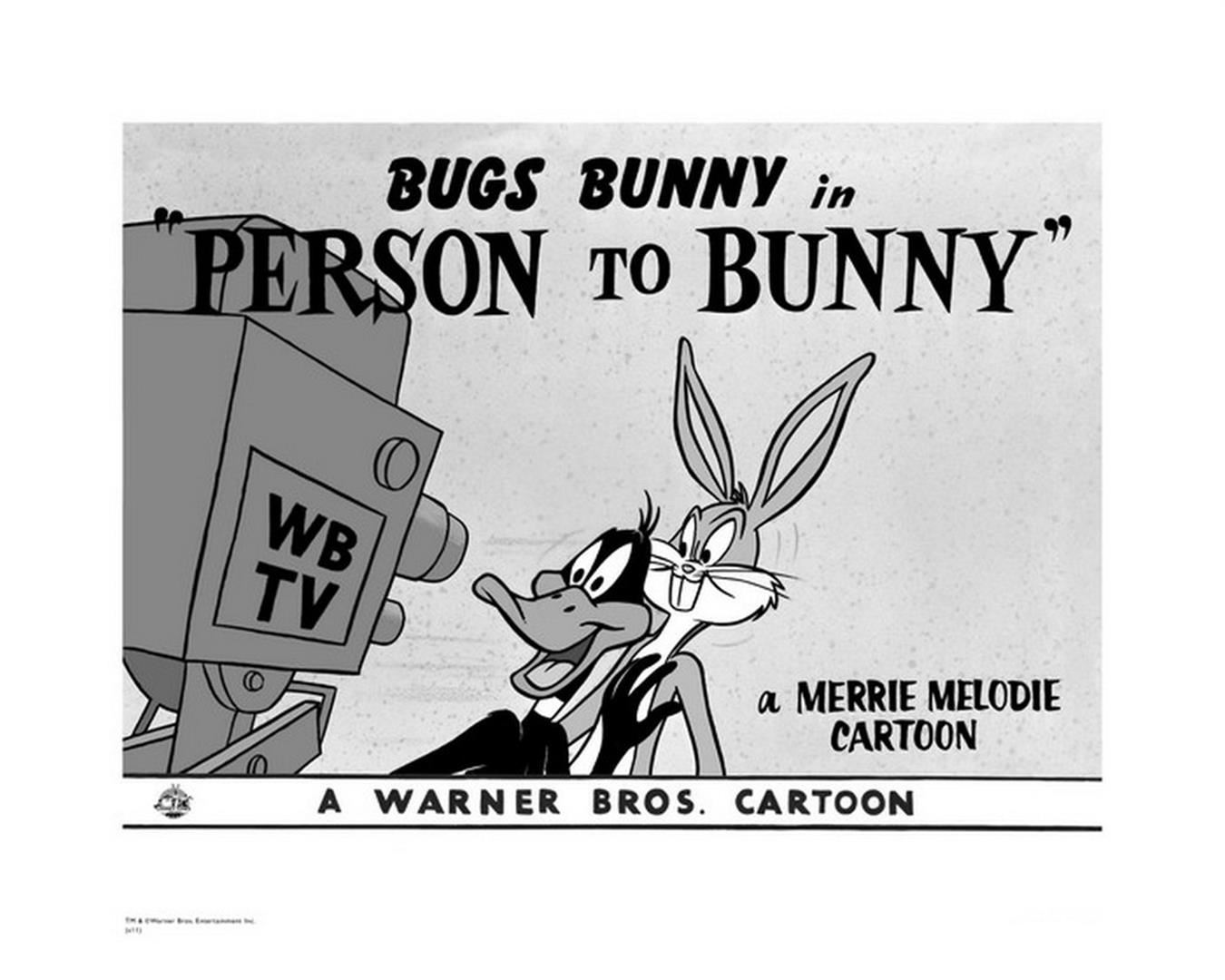 Artist: Warner Brothers - Title: Person to Bunny - Medium: Giclee on Fine Art Paper - Limited Edition: 500 - Image Size: Approximately 12 Inches x 16 inches - Paper Size: Approximately 16 inches x 20 inches - Unframed - Details: This work comes with a Warner Brothers Hologram for Authenticity - The three Warner Directors were expected to turn out ten six-minute cartoons each year, or one every five weeks! And, each director had his own lead designer, background artist, and a team of animators. Mel Blanc provided the common thread as the man of a thousand voices, and Carl Stalling is most recognized as the Music Director for the majority of the Warner Bros. shorts