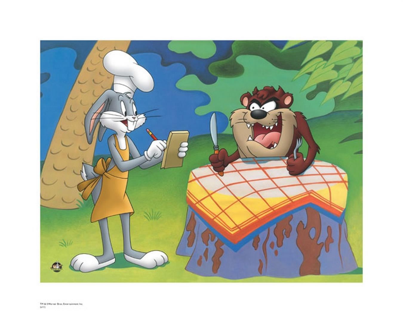 Artist: Warner Brothers - Title: Suppertime - Medium: Giclee on Fine Art Paper - Limited Edition: 500 - Image Size: Approximately 12 Inches x 16 inches - Paper Size: Approximately 16 inches x 20 inches - Unframed - Details: This work comes with a Warner Brothers Hologram for Authenticity - The three Warner Directors were expected to turn out ten six-minute cartoons each year, or one every five weeks! And, each director had his own lead designer, background artist, and a team of animators. Mel Blanc provided the common thread as the man of a thousand voices, and Carl Stalling is most recognized as the Music Director for the majority of the Warner Bros. shorts