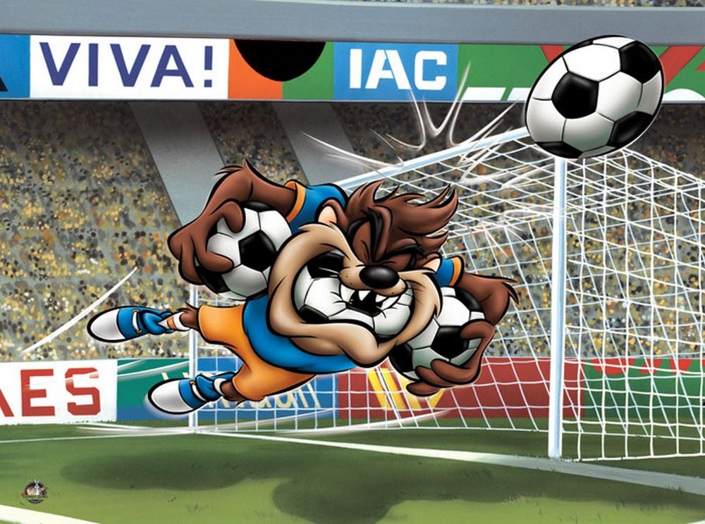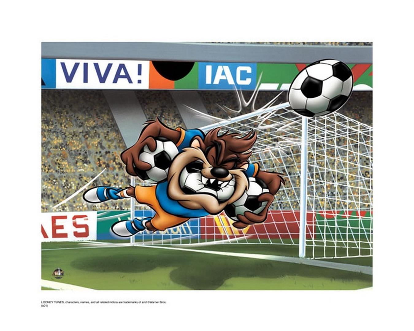 Artist: Warner Brothers - Title: Taz Soccer - Medium: Giclee on Fine Art Paper - Limited Edition: 500 - Image Size: Approximately 12 Inches x 16 inches - Paper Size: Approximately 16 inches x 20 inches - Unframed - Details: This work comes with a Warner Brothers Hologram for Authenticity - The three Warner Directors were expected to turn out ten six-minute cartoons each year, or one every five weeks! And, each director had his own lead designer, background artist, and a team of animators. Mel Blanc provided the common thread as the man of a thousand voices, and Carl Stalling is most recognized as the Music Director for the majority of the Warner Bros. shorts