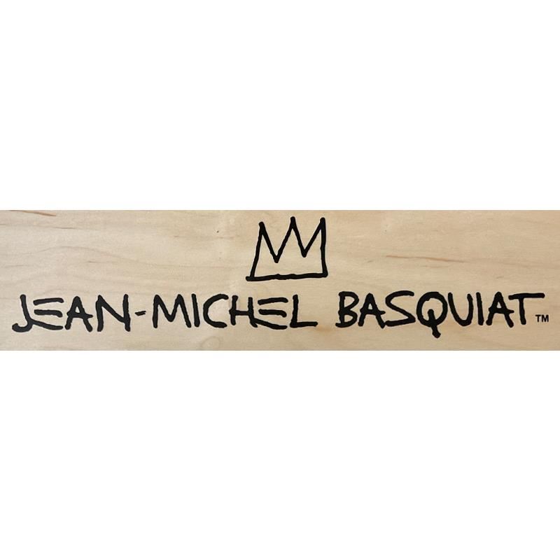 "Warrior (1982)" is a skateboard triptych by Jean-Michel Basquiat (1960-1988), bearing the plate signature of the artist inverso. This triptych comes custom framed. Includes Letter of Authenticity. Measures approx. 30" x 37" x 3" (frame), 24" x 32" (skateboards).