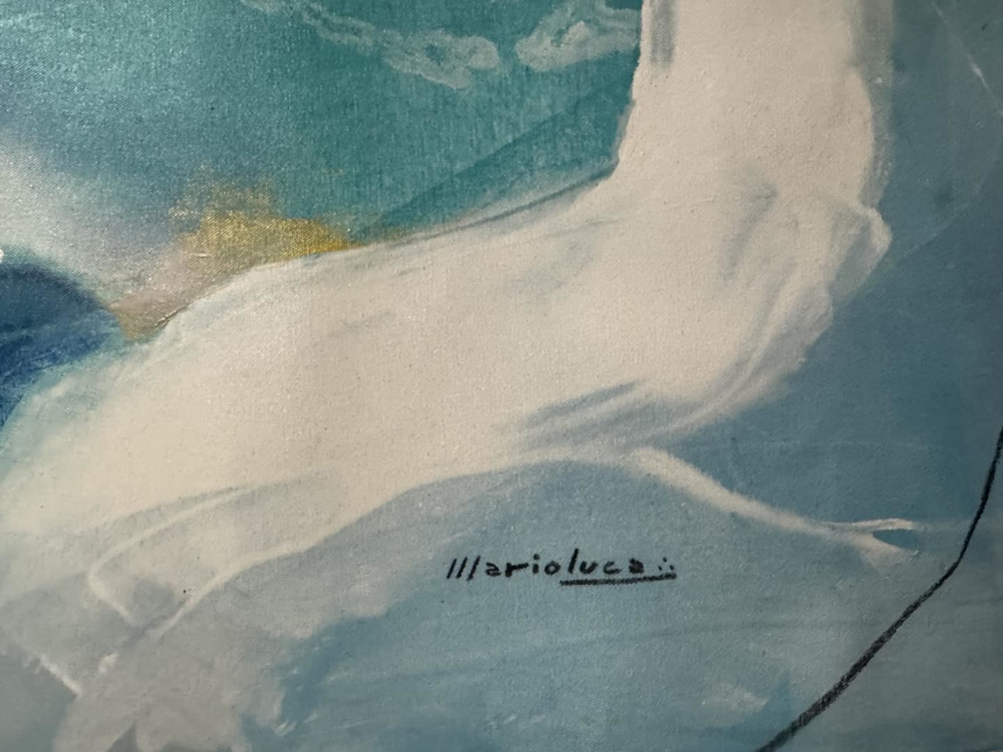 Stunningly beautiful original by Mario Luca is a remarkable work that captures the essence of elegance and artistry. This artwork come framed and ready to hang. Art size 70x40" framed size 72x42"