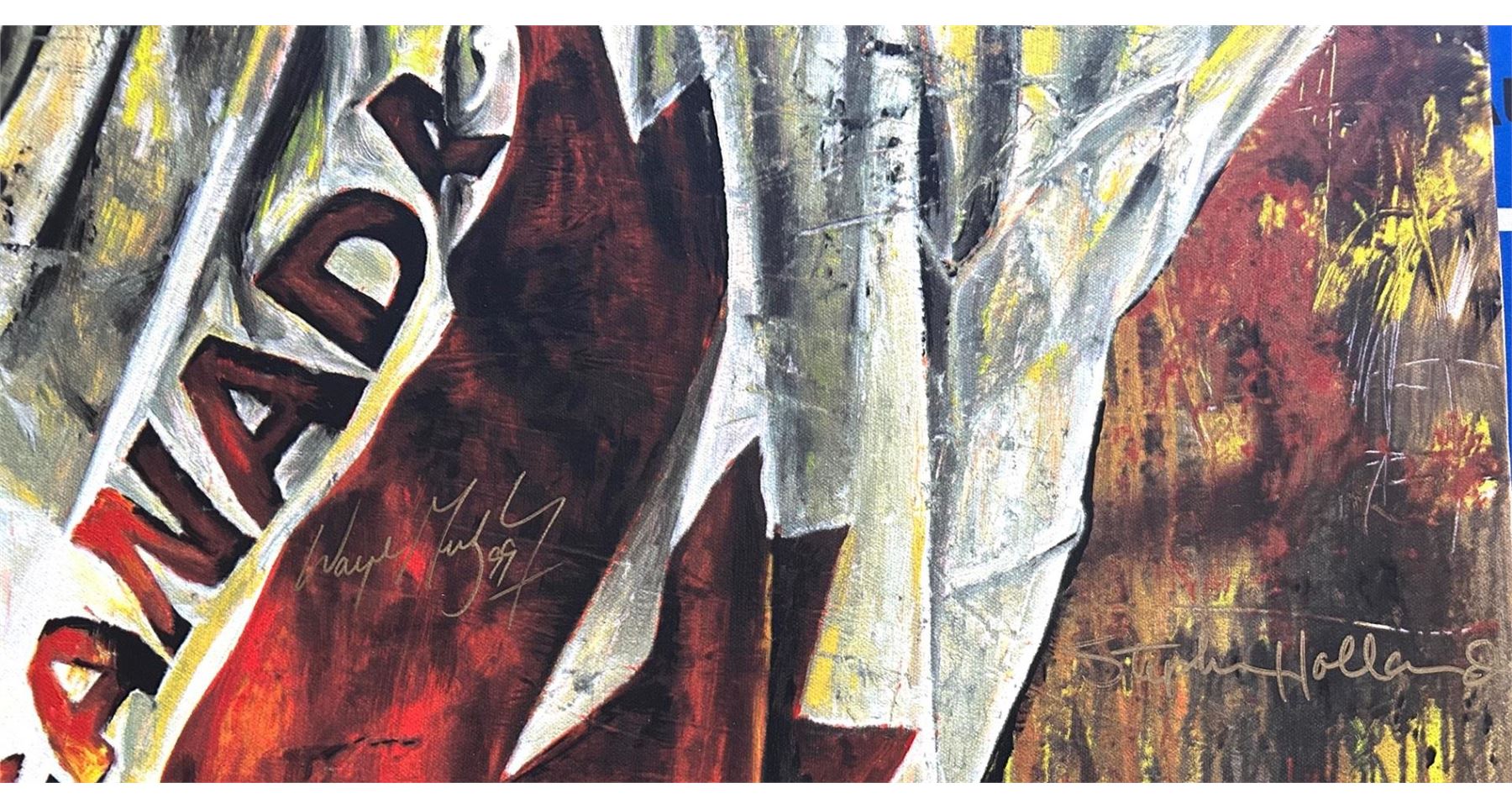 Wayne Gretzky "Canada Cup", signed by Gretzky & Stephen Holland ,artist. It is a 42" x 28" giclee AP 74/99 on stretched canvas w/certificate