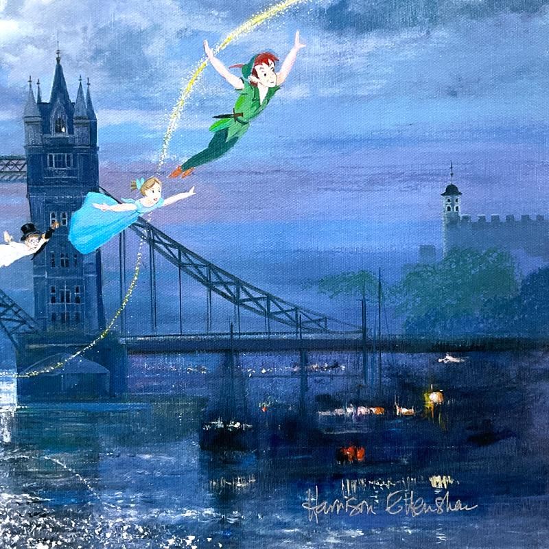 "We Can Fly" is a limited Japanese edition giclee on canvas by Peter (1913-2007) and Harrison Ellenshaw numbered and hand signed by the artists. This piece is licensed by Disney Fine Art. Includes Letter of Authenticity. Measures approx. 27" x 18" (image).