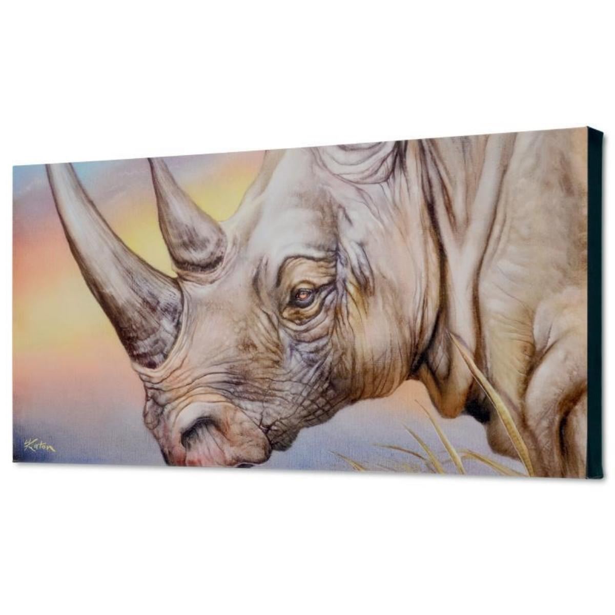 "White Rhino" is a limited edition giclee on canvas by Martin Katon, numbered and hand signed by the artist! This piece comes gallery wrapped. Includes Letter of Authenticity. Measures approx. 24" x 12" (image).