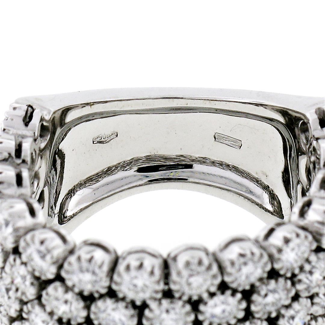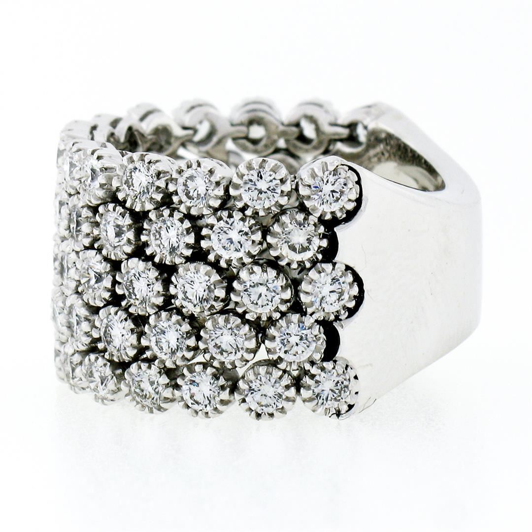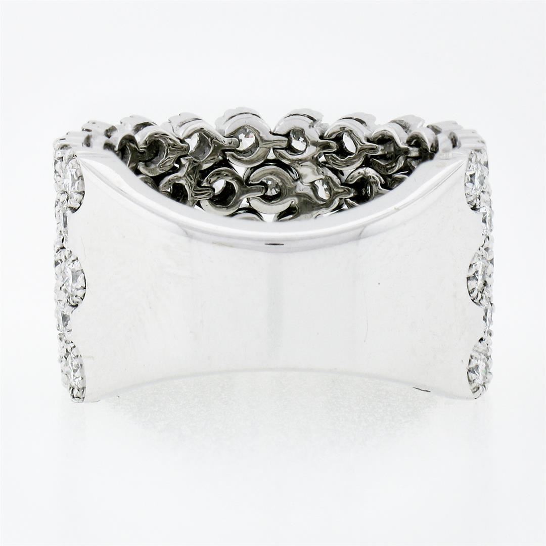 An estate solid 18k white gold wide band ring, with 68 round brilliant cut natural diamonds (F/G- VS1/VS2 ; 2.72ctw). The ring is size 7.0, weighs a total of 14.62 grams, and measures 13.50mm wide.