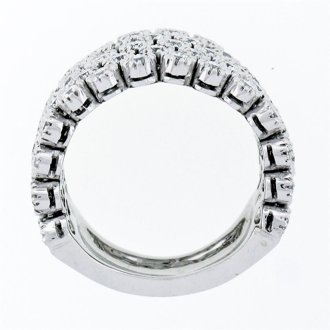 An estate solid 18k white gold wide band ring, with 68 round brilliant cut natural diamonds (F/G- VS1/VS2 ; 2.72ctw). The ring is size 7.0, weighs a total of 14.62 grams, and measures 13.50mm wide.