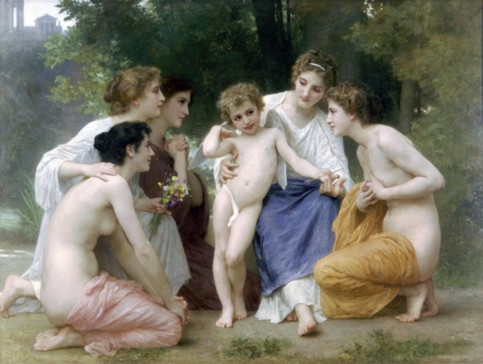Artist: William Bouguereau Title: Admiration Medium: Fine Art Reproduction Giclee on Canvas Image Size: Approximately 24 inches x 32 inches Unframed on Unstretched Canvas Biography: "William Bouguereau is unquestionably one of history's greatest artistic geniuses. Since 1960, his values in the market place have literally exploded, doubling on average every 3.5 years. From works selling for and average $500 to $1500 in 1960, they have accelerated to where in the last three years alone his auction records have been repeatedly broken another 4 times. In 1998 The Heart's Awakening sold for $1,410,000 at Christie's New York. In 1999 Cupid et Psyche, Enfants sold for $1,760,000 also at Christie's to be surpassed the very next day at Sotheby's when Alma Perens owned by Sylvester Stalone sold for $2,650,00. That record only lasted one year until May of 2000, when Charite sold $3,520,000 back at Christie's. Over the last 20 years his paintings all over the world have been taken out of their crates, basements, storage rooms and attics, dusted off, many cleaned and expertly restored, and today over a hundred museums and institutions proudly have his works on permanent exhibit.