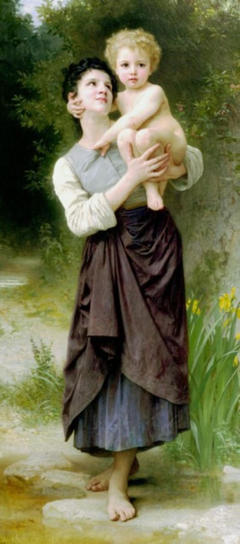 Artist: William Bouguereau Title: Brother and Sister Medium: Fine Art Reproduction Giclee on Canvas Image Size: Approximately 20 inches x 8.75 inches Framed: Unframed on Unstretched Canvas Biography: "William Bouguereau is unquestionably one of history's greatest artistic geniuses. Since 1960, his values in the market place have literally exploded, doubling on average every 3.5 years. From works selling for and average $500 to $1500 in 1960, they have accelerated to where in the last three years alone his auction records have been repeatedly broken another 4 times. In 1998 The Heart's Awakening sold for $1,410,000 at Christie's New York. In 1999 Cupid et Psyche, Enfants sold for $1,760,000 also at Christie's to be surpassed the very next day at Sotheby's when Alma Perens owned by Sylvester Stalone sold for $2,650,00. That record only lasted one year until May of 2000, when Charite sold $3,520,000 back at Christie's. Over the last 20 years his paintings all over the world have been taken out of their crates, basements, storage rooms and attics, dusted off, many cleaned and expertly restored, and today over a hundred museums and institutions proudly have his works on permanent exhibit.