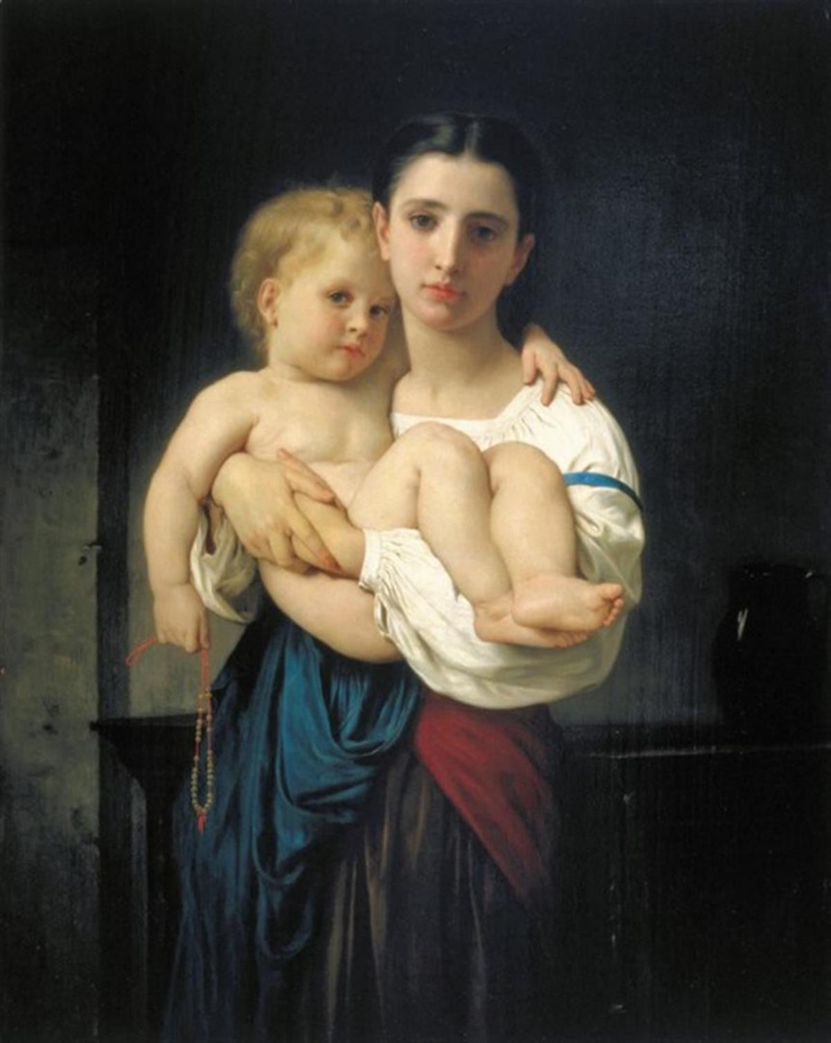 Artist: William Bouguereau - Title: Elder Sister - Medium: Fine Art Reproduction Giclee on Canvas - Image Size: Approximately 20 inches x 16 inches - Unframed on Unstretched Canvas - Biography: William Bouguereau is unquestionably one of history's greatest artistic geniuses. Since 1960, his values in the market place have literally exploded, doubling on average every 3.5 years. From works selling for and average $500 to $1500 in 1960, they have accelerated to where in the last three years alone his auction records have been repeatedly broken another 4 times. In 1998 The Heart's Awakening sold for $1,410,000 at Christie's New York.