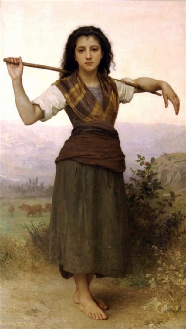 Artist: William Bouguereau Title: The Shepherdess Medium: Fine Art Reproduction Giclee on Canvas Image Size: Approximately 20 inches x 11.25 inches Unframed on Unstretched Canvas Biography: "William Bouguereau is unquestionably one of history's greatest artistic geniuses. Since 1960, his values in the market place have literally exploded, doubling on average every 3.5 years. From works selling for and average $500 to $1500 in 1960, they have accelerated to where in the last three years alone his auction records have been repeatedly broken another 4 times. In 1998 The Heart's Awakening sold for $1,410,000 at Christie's New York. In 1999 Cupid et Psyche, Enfants sold for $1,760,000 also at Christie's to be surpassed the very next day at Sotheby's when Alma Perens owned by Sylvester Stalone sold for $2,650,00. That record only lasted one year until May of 2000, when Charite sold $3,520,000 back at Christie's. Over the last 20 years his paintings all over the world have been taken out of their crates, basements, storage rooms and attics, dusted off, many cleaned and expertly restored, and today over a hundred museums and institutions proudly have his works on permanent exhibit.