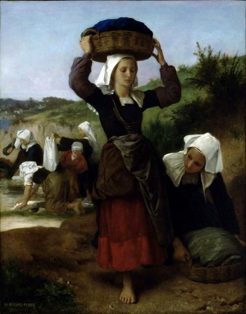 Artist: William Bouguereau Title: Washerwomen of Fouesnant Medium: Fine Art Reproduction Giclee on Canvas Image Size: Approximately 32 inches x 25 inches Unframed on Unstretched Canvas Biography: "William Bouguereau is unquestionably one of history's greatest artistic geniuses. Since 1960, his values in the market place have literally exploded, doubling on average every 3.5 years. From works selling for and average $500 to $1500 in 1960, they have accelerated to where in the last three years alone his auction records have been repeatedly broken another 4 times. In 1998 The Heart's Awakening sold for $1,410,000 at Christie's New York. In 1999 Cupid et Psyche, Enfants sold for $1,760,000 also at Christie's to be surpassed the very next day at Sotheby's when Alma Perens owned by Sylvester Stalone sold for $2,650,00. That record only lasted one year until May of 2000, when Charite sold $3,520,000 back at Christie's. Over the last 20 years his paintings all over the world have been taken out of their crates, basements, storage rooms and attics, dusted off, many cleaned and expertly restored, and today over a hundred museums and institutions proudly have his works on permanent exhibit.