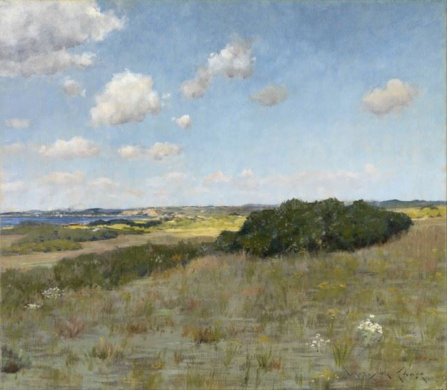 Artist: William Merritt Chase - Title: Shinnicock Hills - Medium: Fine Art Giclee on Canvas - Image Size: Approximately 17.5 inches x 20 inches - Framed: Unframed on Unstretched Canvas - Biography: William Merritt Chase was an American painter, known as an exponent of Impressionism and as a teacher. He is also responsible for establishing the Chase School, which later would become Parsons School of Design.
