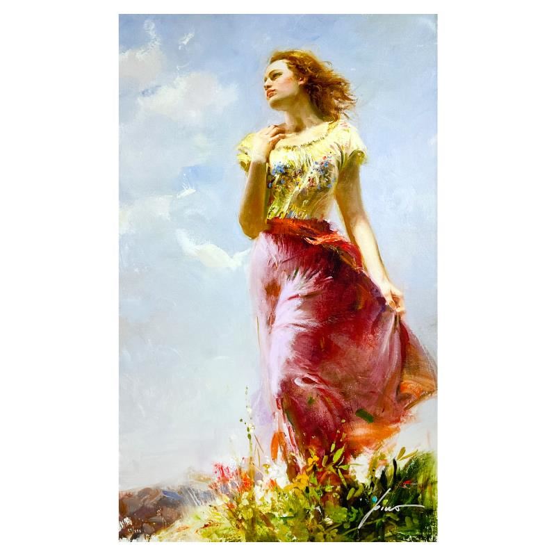 "Wind Swept" is a limited edition giclee on canvas by Pino (1939-2010), numbered 29/295 and hand signed by the artist. Includes Certificate of Authenticity. Measures approx. 39" x 24" (image).
