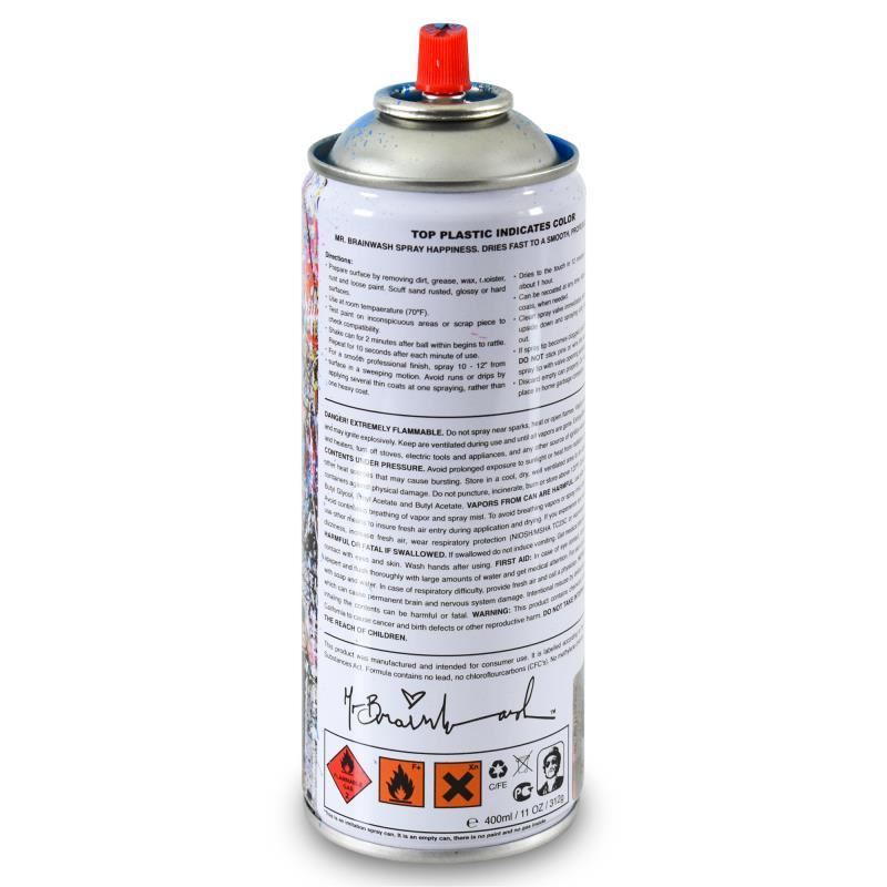 "Work Well Together (Cyan)" is a numbered limited edition hand painted spray can by Mr Brainwash. This piece bears the plate signature of the artist and comes from his 2020 Classic Spray Can Collection. Measures approximately 2.5" x 7.5".