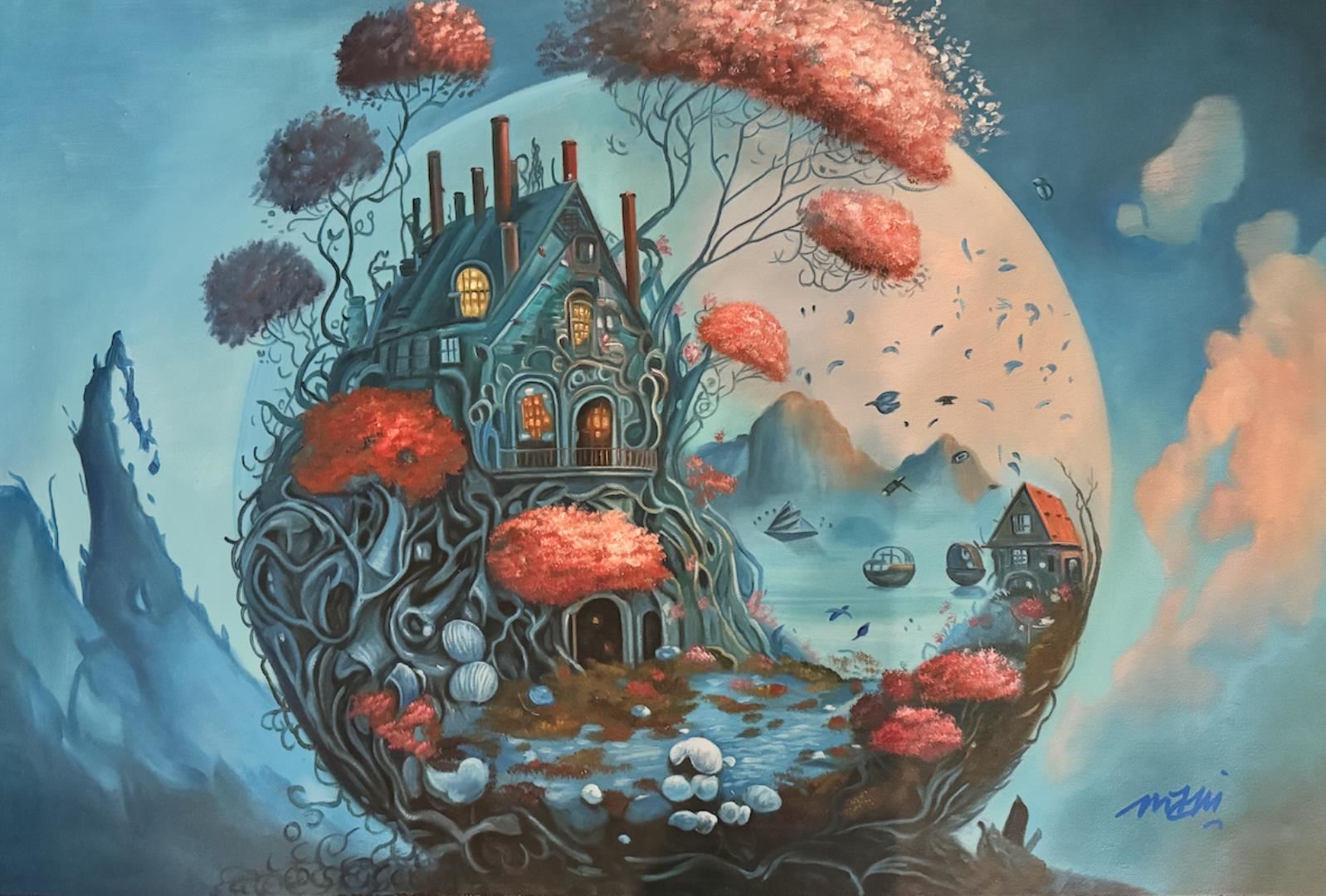A stunning Artpiece in very surreal style, by a young American artist Mani. 20"x30" original on canvas w/ COA