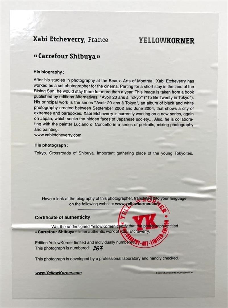 Xabi Etchevarry France Carrefour Shibuya YellowKorner Certified Photograph. Certificate of Authenticity from YellowKorner affixed to the back. Matted Dimensions 16"x20". Protected with Clear Mylar Sleeve.