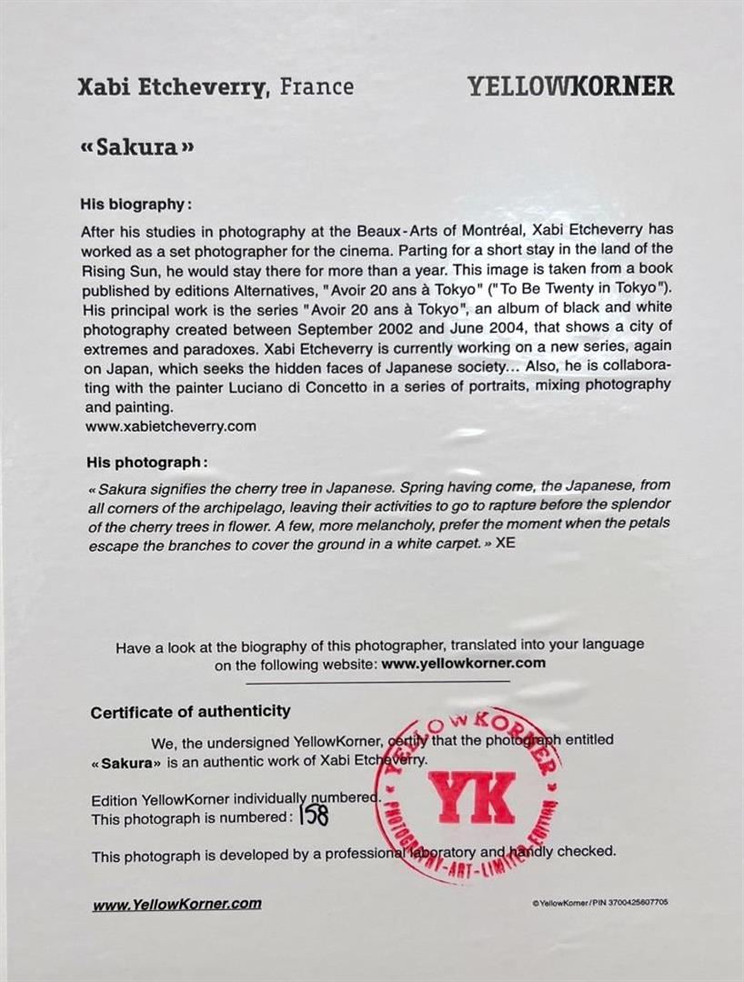 Xabi Etcheverry Sakura Cherry Tree YellowKorner Certified Photograph. Certificate of Authenticity from YellowKorner affixed to the back. Matted Dimensions 16"x20". Protected with Clear Mylar Sleeve.