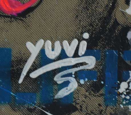 YUVI GO HUNT YOUR DREAMS ORIGINAL SIGNED. Artist: Yuvi - Title: Go Hunt Your Dreams - Medium: Original Acrylic on Canvas - Signature: Hand-signed by the artist - Image Size: Approximately 30 inches x 40 inches - Framed: Unframed on Unstretched Canvas - Biography: Yuvi describes himself as a graffiti inspired pop artist saying: "The street as the graffiti artist's main source of inspiration makes the work accessible, authentic, and relatable." The animation and vibrancy in each work takes us straight back to the streets which inspired them, and has won him exhibitions and admirers in places as diverse as New York and New Delhi. - Yuvi combines traditional techniques with digital technology. His characters and their settings are formed from paint, printed paper cuttings, layers of old newspaper clippings, sketches, silk screen prints, various glues, inks, spray paints, sand, glass fragments and more. He often uses his bare hands which means he has an intense physical relationship with every piece he creates; to look at his hands after a day in his studio is to understand his dedication, passion, and love for his work. The finished composition is intensely tactile and the spectator is invited to feel the work with their hands. - Warranty: Item GUARANTEED to be as described