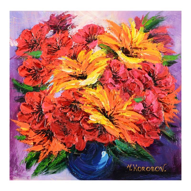Movement is an original acrylic painting on canvas by Yana Korobov, hand signed by the artist. Includes Letter of Authenticity. Measures approx. 20" x 20" (image).
