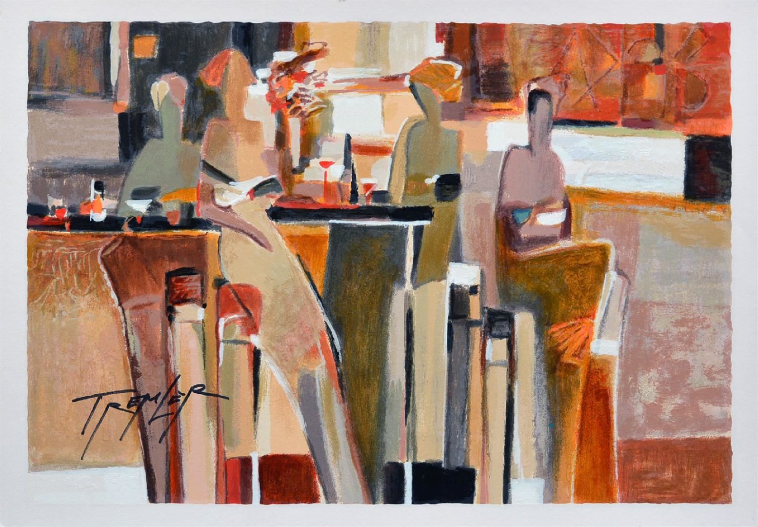 Artist: Yuri Tremler - Title: Matinee II - Medium: Serigraph on Fine Art Paper - Signature: Hand-signed by the Artist - Limited Edition: 490 - Image Size: Approximately 13 inches x 18.5 inches - Paper Size: Approximately 14 inches x 20 inches - Unframed - Details: This work comes with a Certificate of Authenticity - Yuri's art reminds us of sudden still-life, left after an intimate party, of time spent with friends, or shared past which still excites. Sometimes whimsical, sometimes nostalgic, Tremler's art reaches inward to basic emotions of humanity.