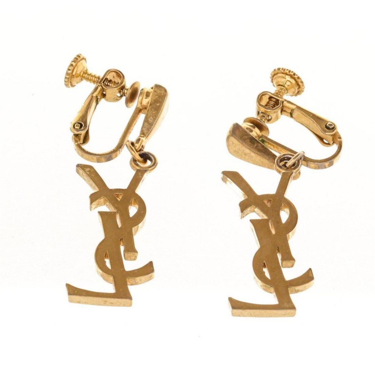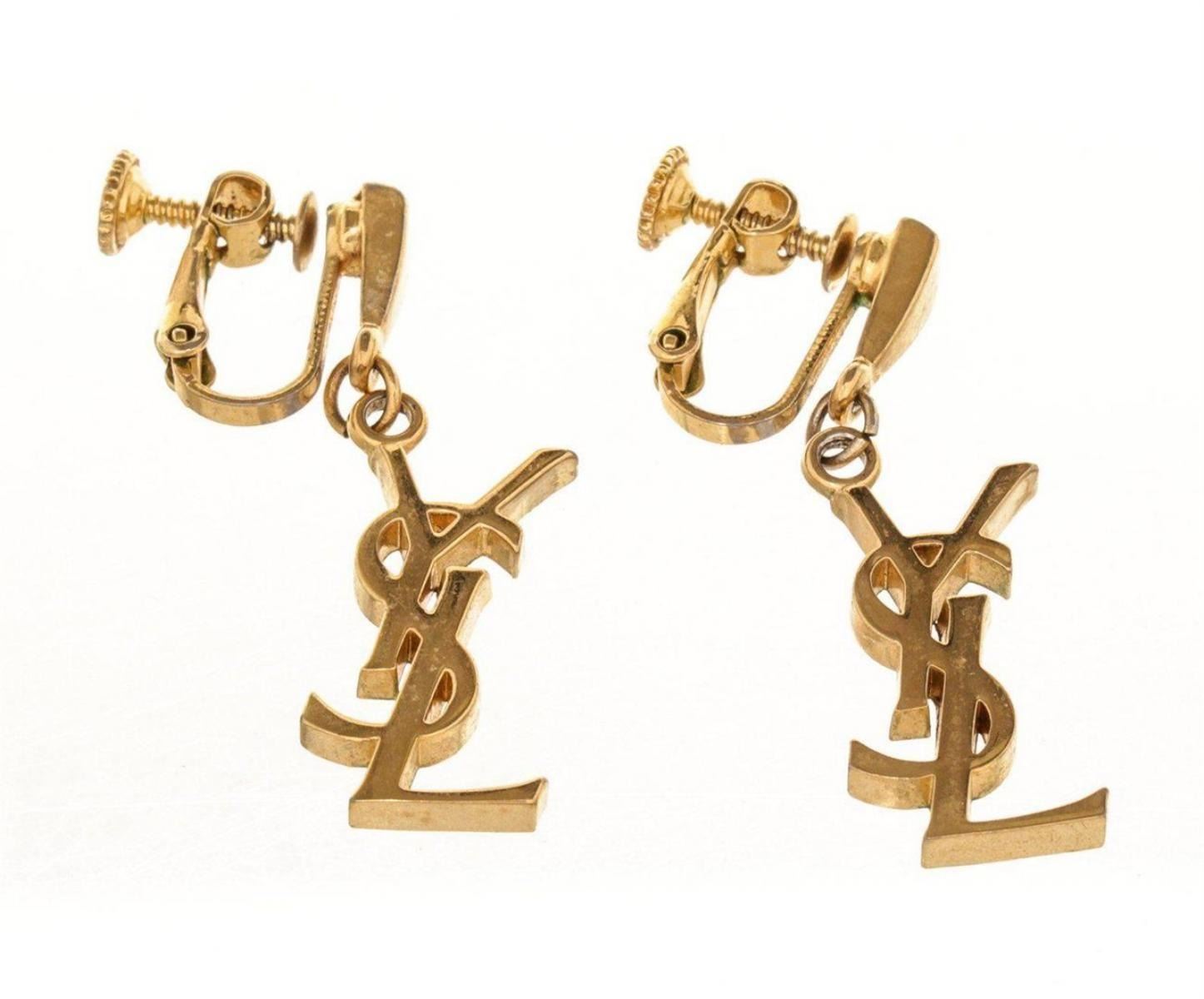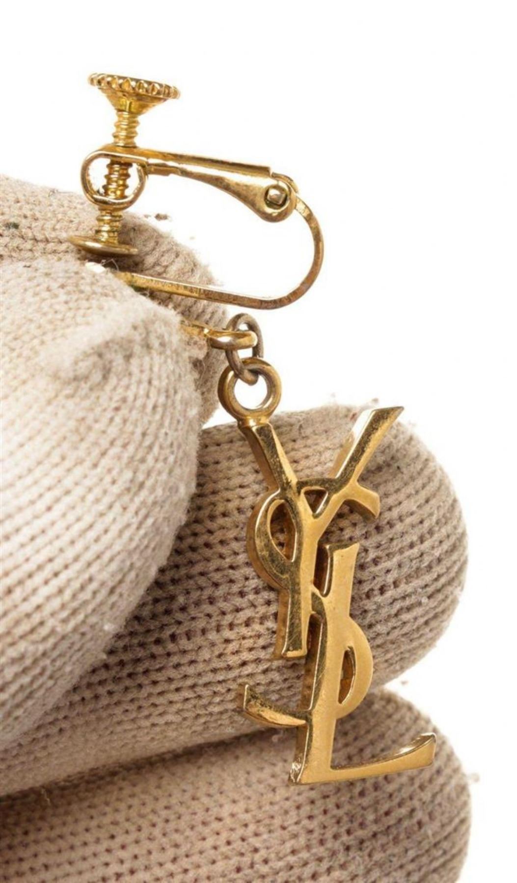 Yves Saint Laurent YSL Gold Earrings with gold-tone hardware, earrings, clutch back closure.