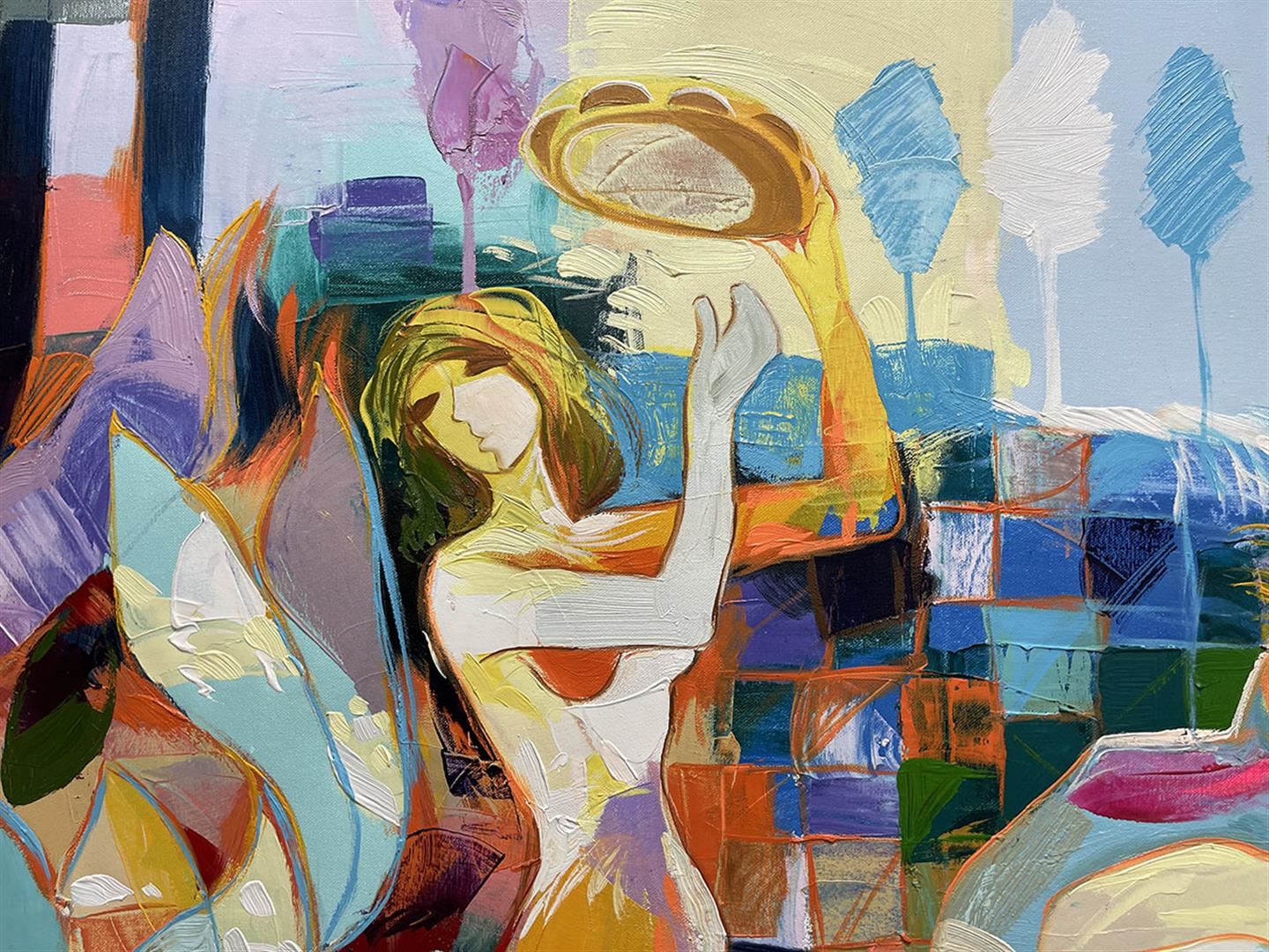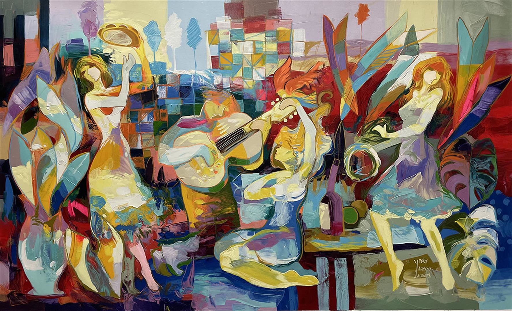 Beautiful original oil on canvas. Hand signed by artists. Artwork comes with a certificate of authenticity. This artwork comes rolled. Size 80x48"